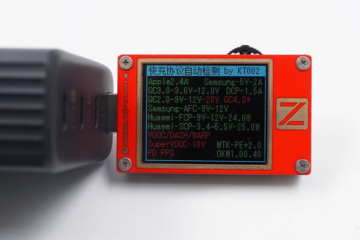 讀取USB-C3接口的快充協(xié)議,實測支持Apple2.4A、QC2.0、QC3.0、AFC、FCP、SCP、PE和PD等快充協(xié)議。