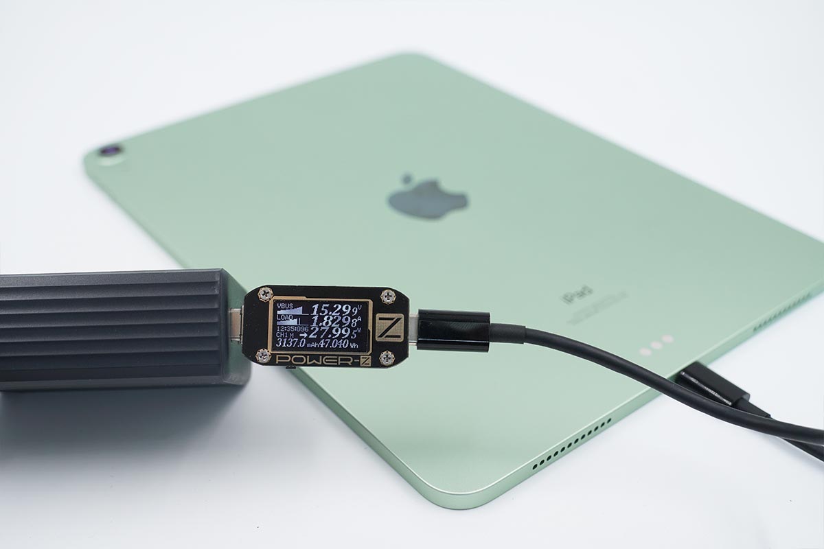 iPad Air 4支持USB PD快充協(xié)議,使用USB-C1為iPad Air 4充電,功率為15.29V 1.82A 27.99W。