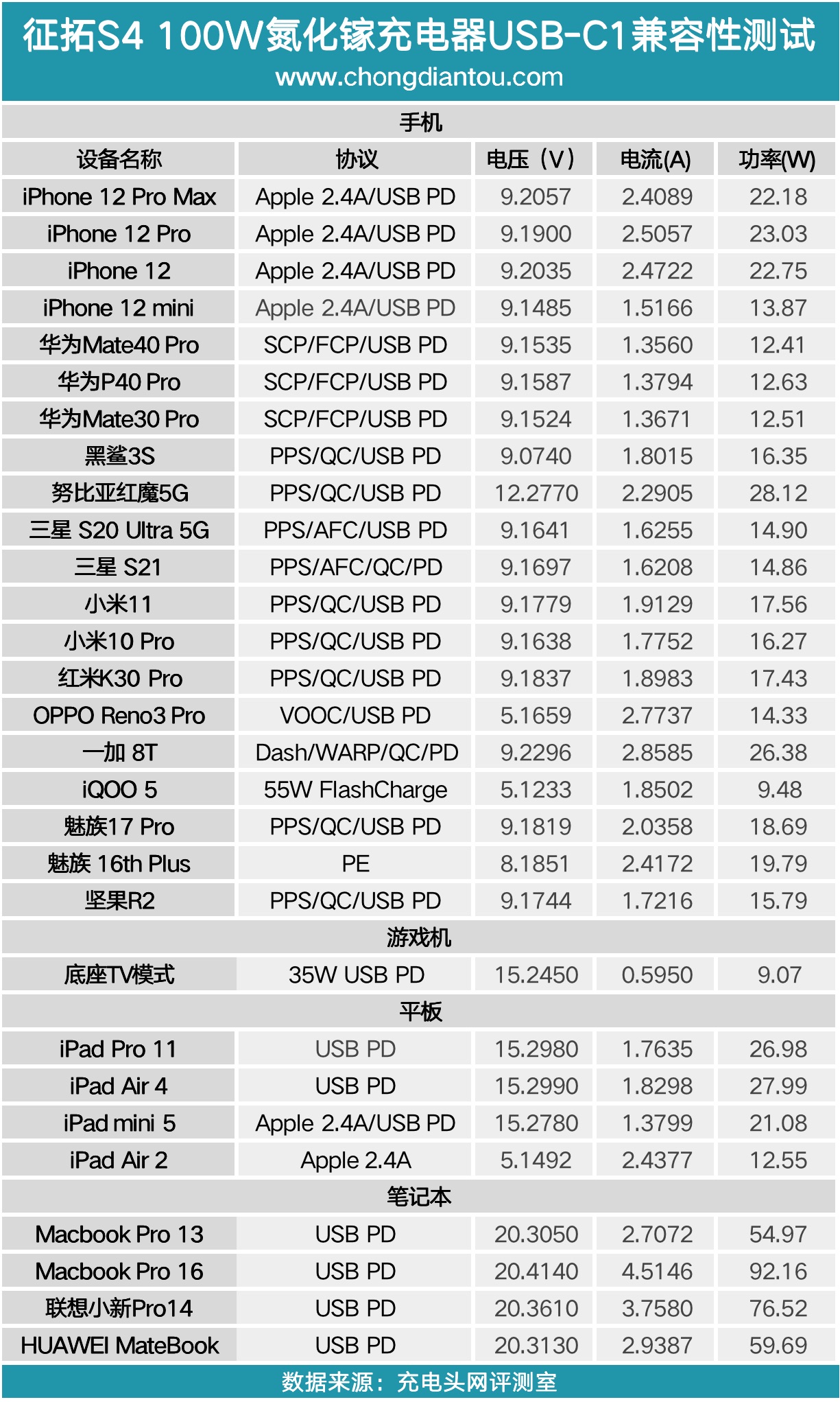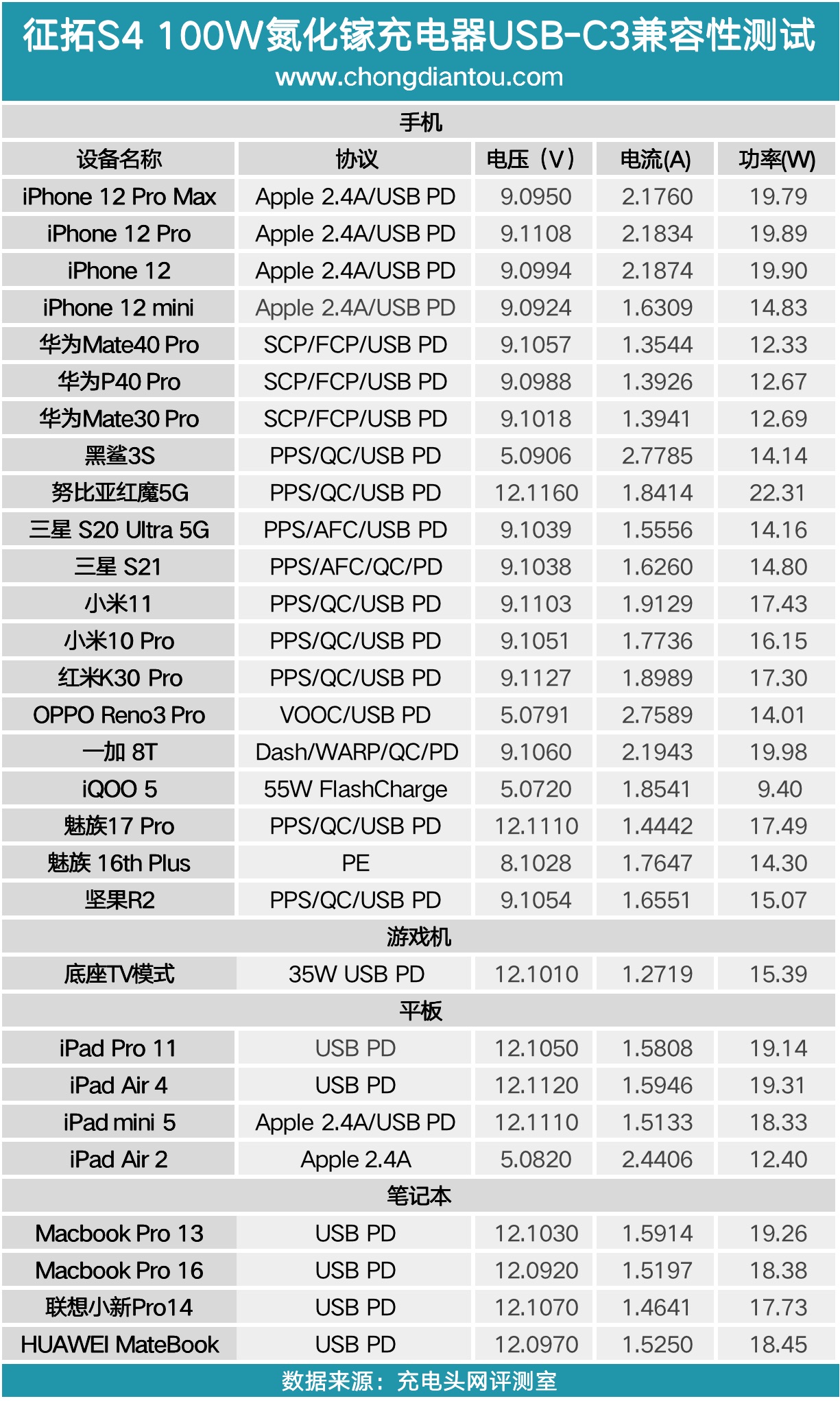 將USB-C2接口的測試數(shù)據(jù)匯總,得益于PPS快充協(xié)議的加持所以在為部分支持PPS快充的手機充電時可以獲得更大的充電功率,此外對于Switch的底座模式的支持也是也不錯的。