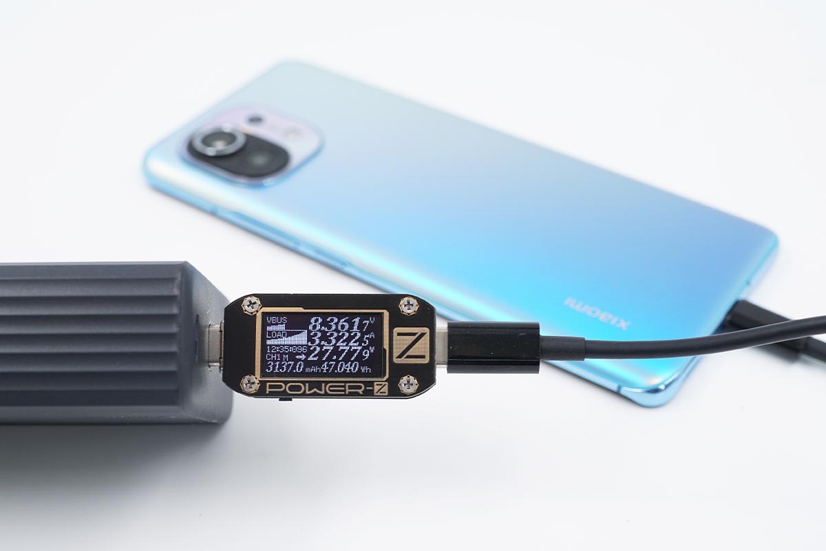 小米11支持PPS/QC/USB PD快充協(xié)議,使用USB-C2為小米11充電,功率為8.36V 3.32A 27.77W。