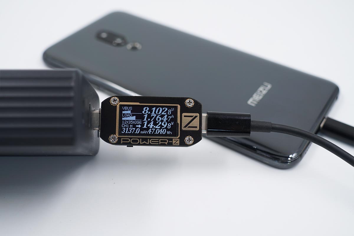 魅族16th Plus僅支持MTK PE快充協(xié)議,使用USB-C3為魅族16th Plus充電,功率為8.10V 1.76A 14.29W。