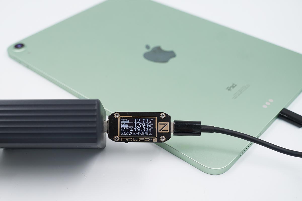 iPad Air 4支持USB PD快充協(xié)議,使用USB-C3為iPad Air 4充電,功率為12.11V 1.59A 19.31W。