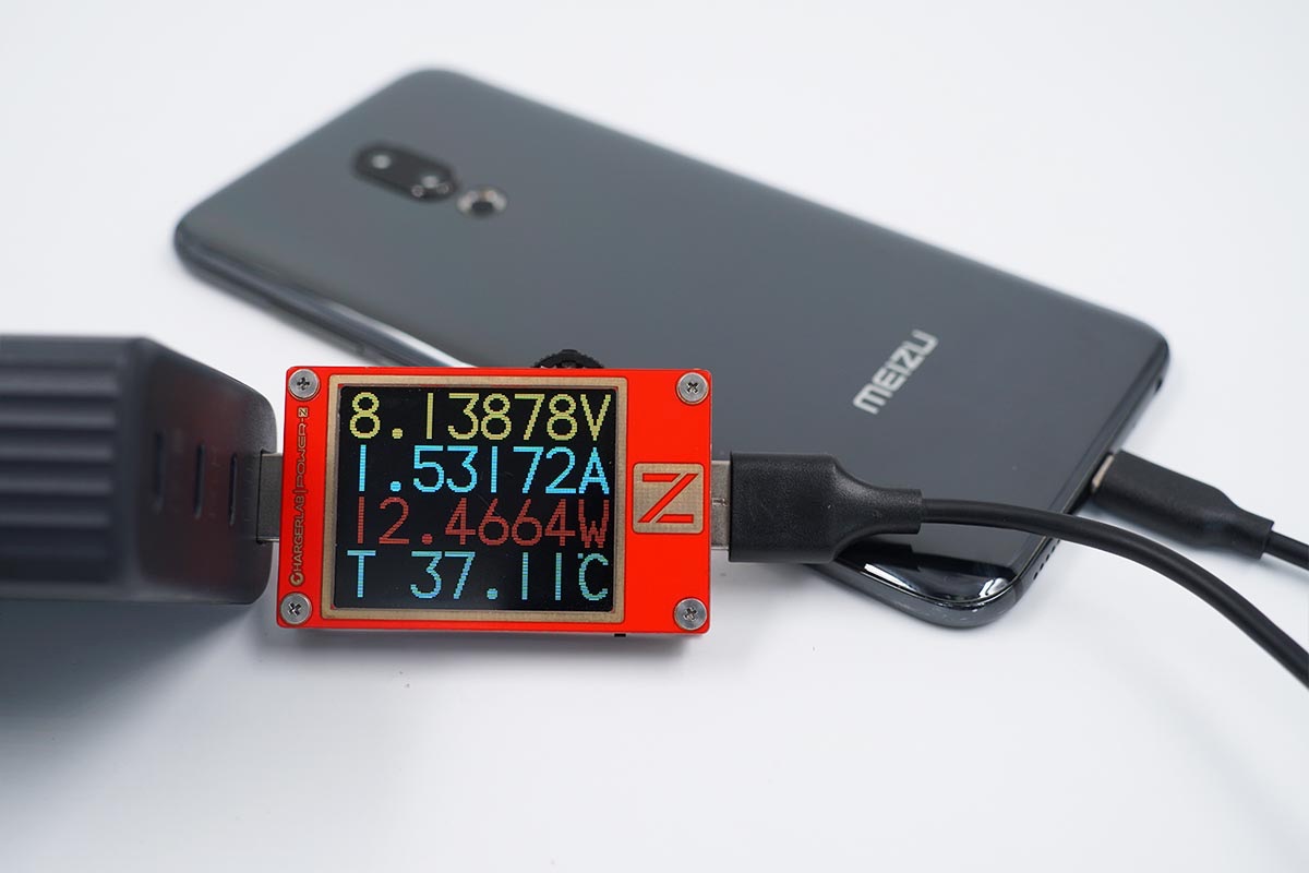魅族16th Plus僅支持MTK PE快充協(xié)議,使用USB-A為魅族16th Plus充電,功率為8.13V 1.53A 12.46W。
