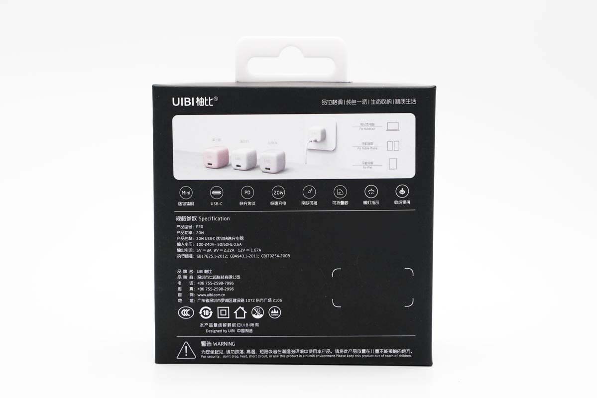 UIBI柚比這款充電器的包裝盒采用櫥窗風格設計,和近期推出的精瓷黃金版迷你車充包裝盒風格一致。