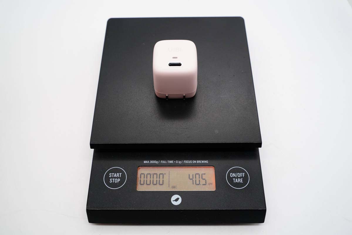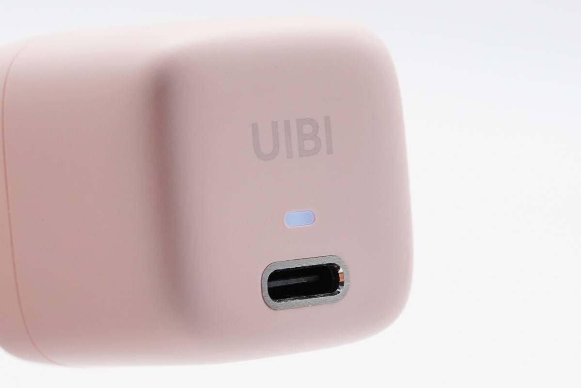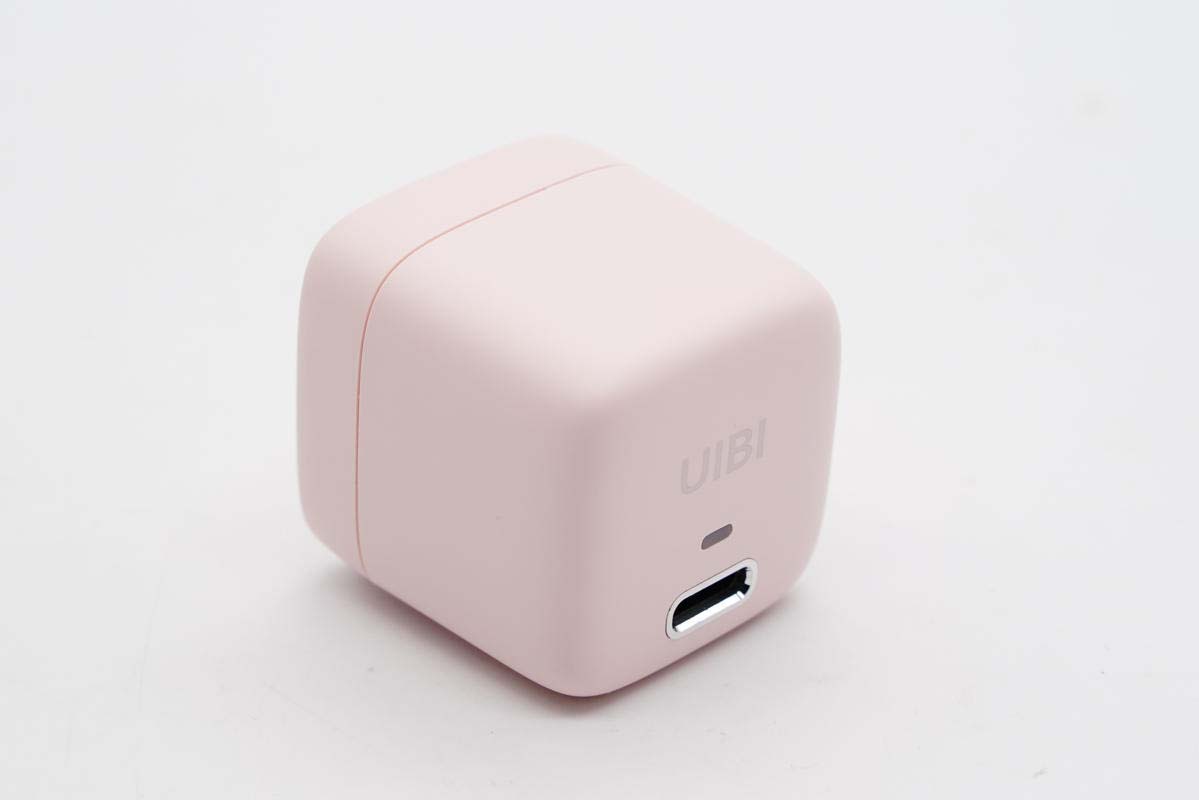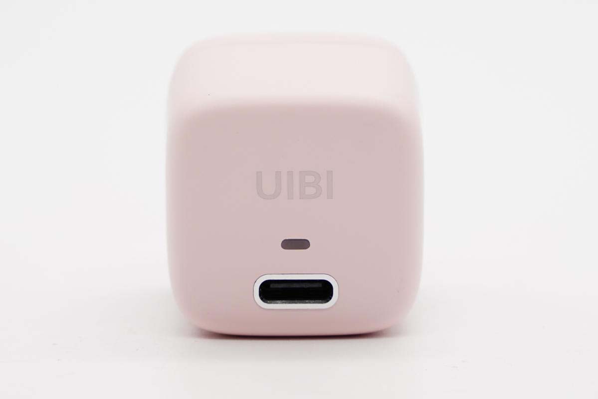 頂面印有UIBI品牌,并配有LED指示燈和USB-C接口。C口黑色膠芯不露銅,并配有金屬環進行裝飾,讓充電器更加精致。