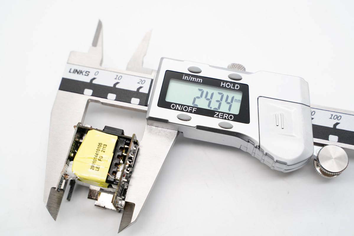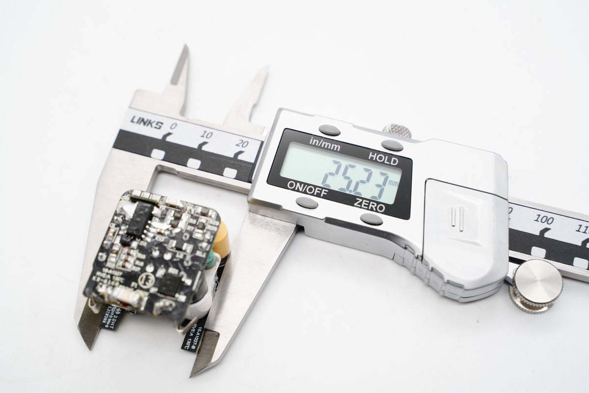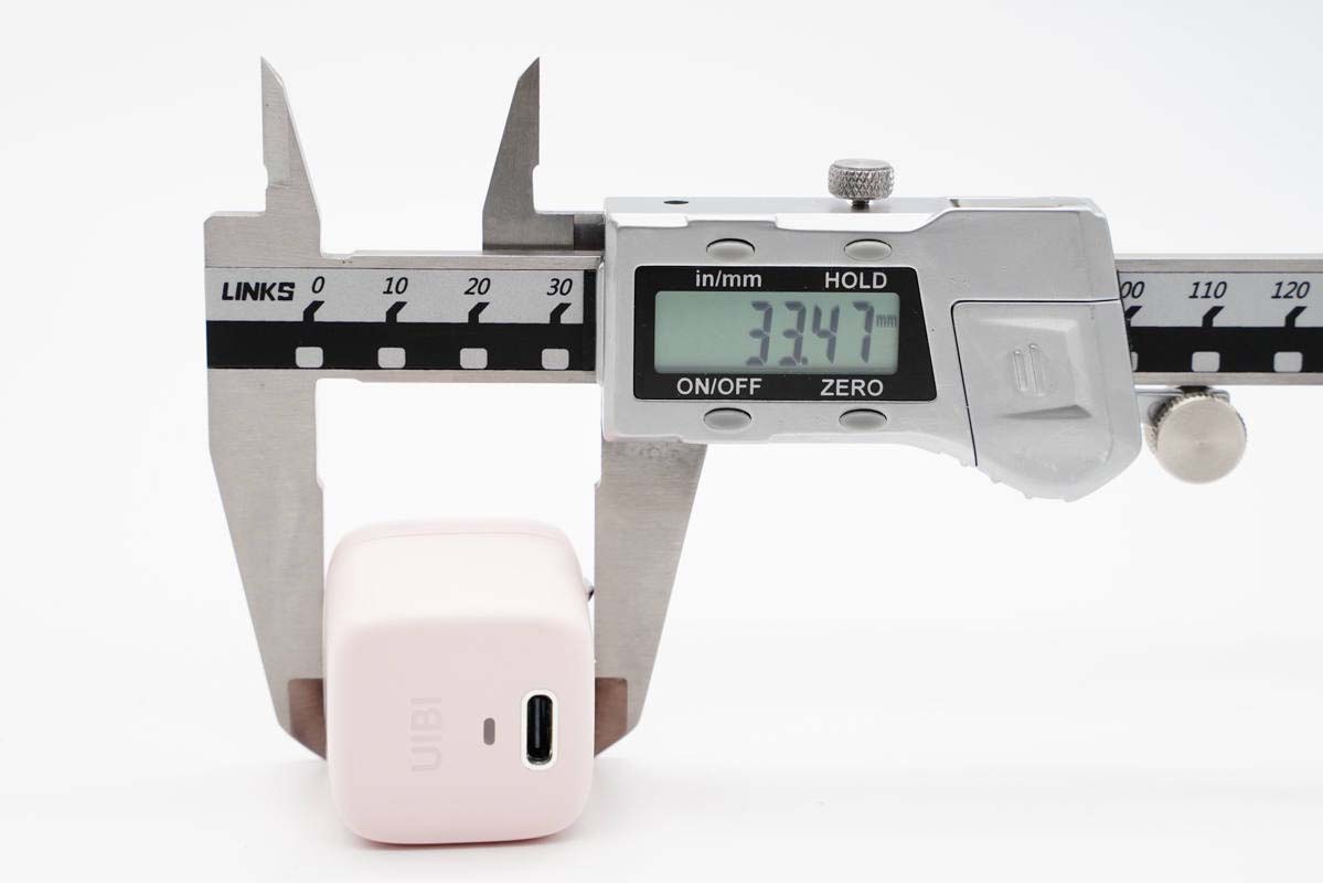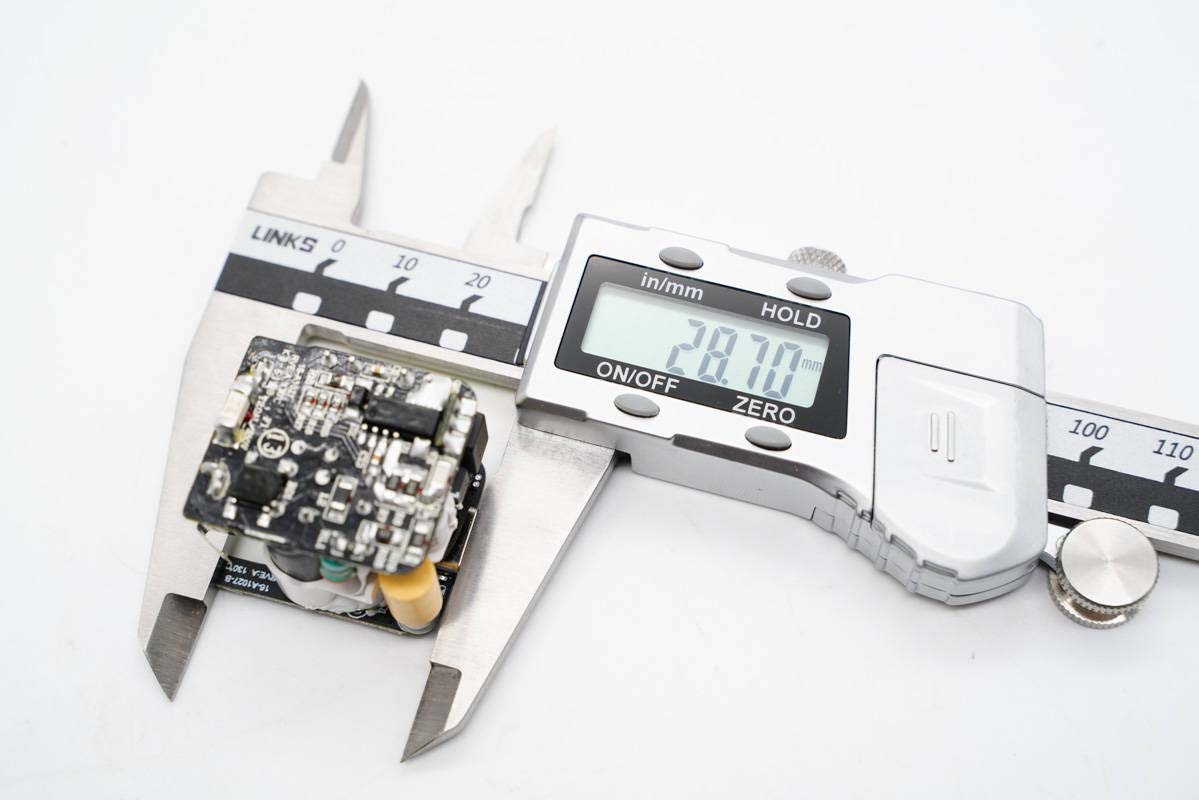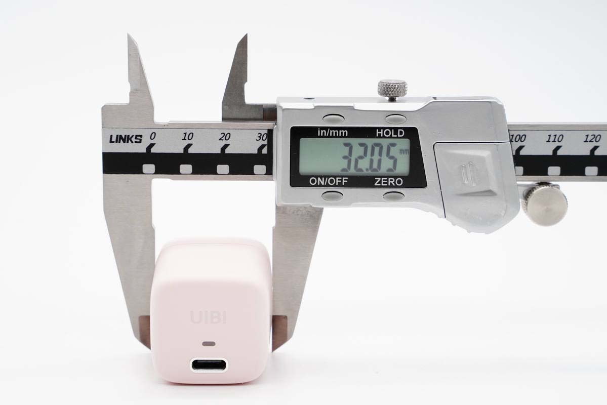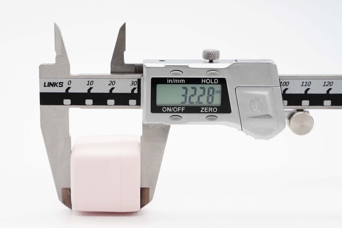 使用游標卡尺實測充電器機身高度為32.28mm。