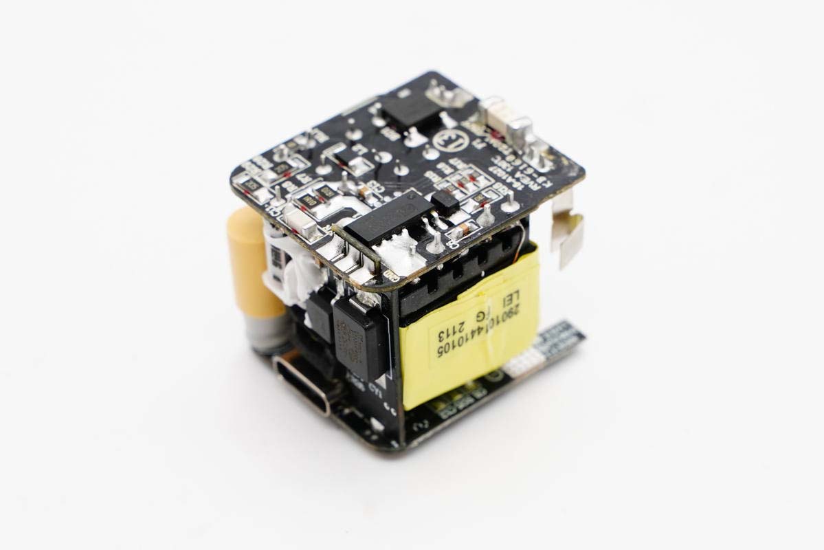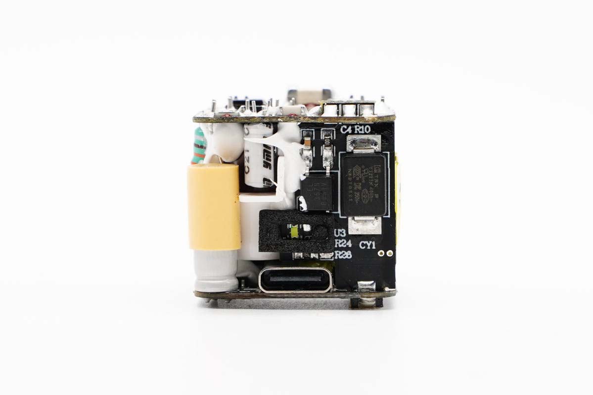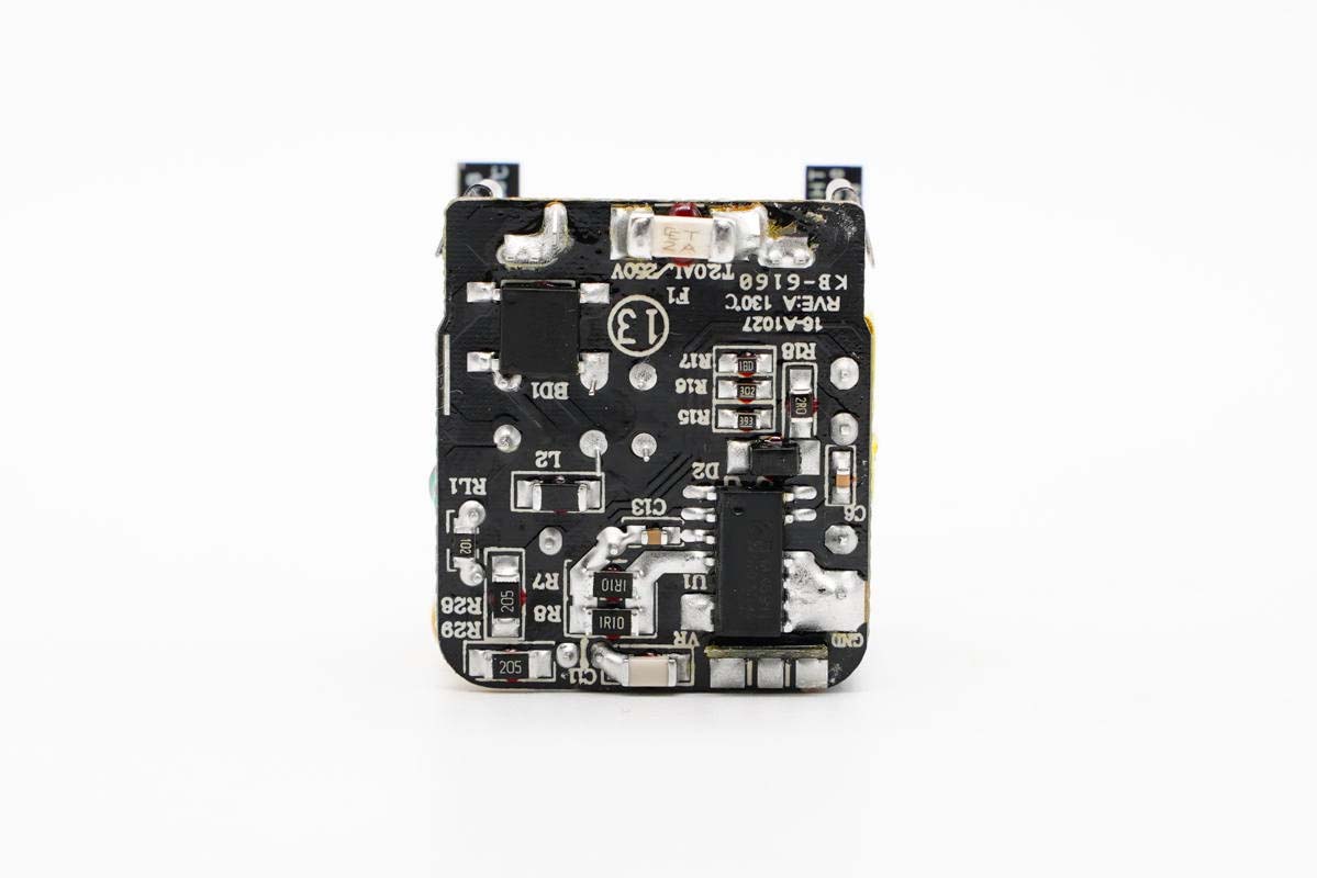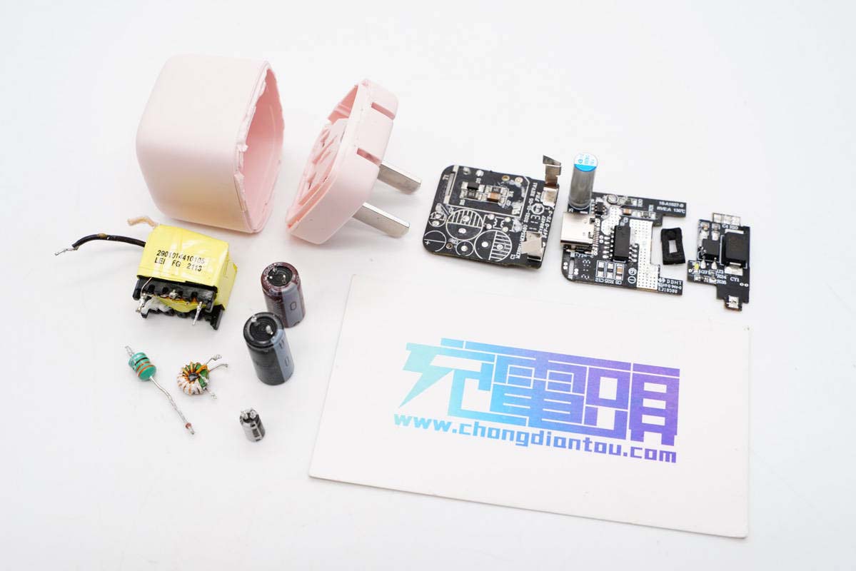 通過觀察發現UIBI柚比這款迷你20W快充充電器采用開關電源寬范圍輸出,由協議芯片控制,通過光耦反饋輸出電壓的設計架構。下面就由輸入端開始為大家一一介紹這款產品的用料。