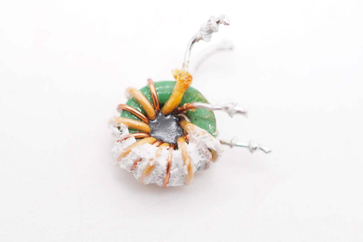 共模電感特寫,雙線繞制,用于濾除EMI干擾。