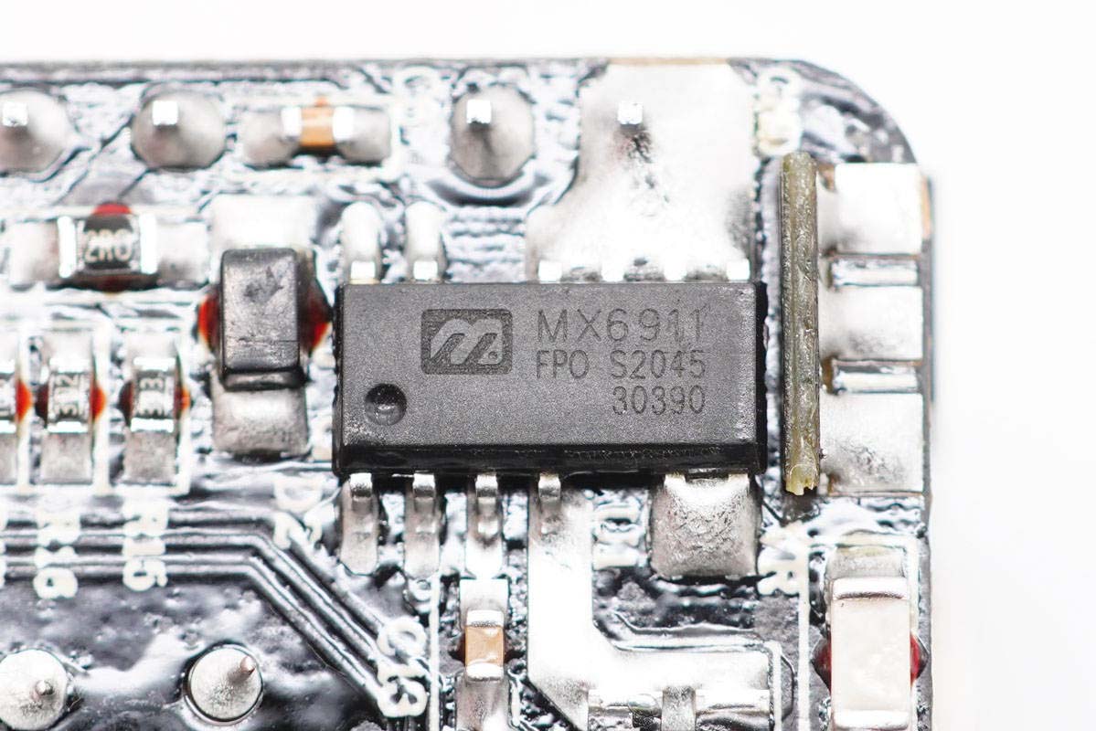 主控芯片采用美思半導體SmartTOP系列,型號MX6911,這是一款高性能開關電源控制器,專為高度集成的快充適配器設計,為高效率,低待機功耗而優化。