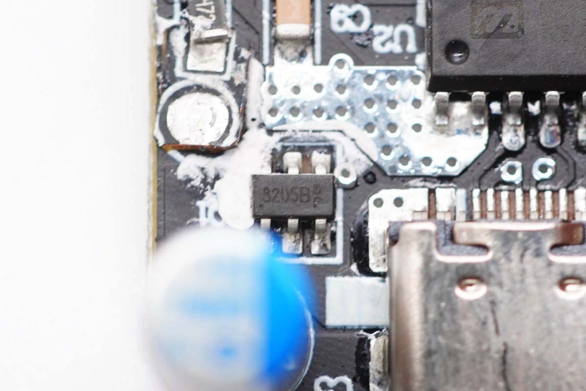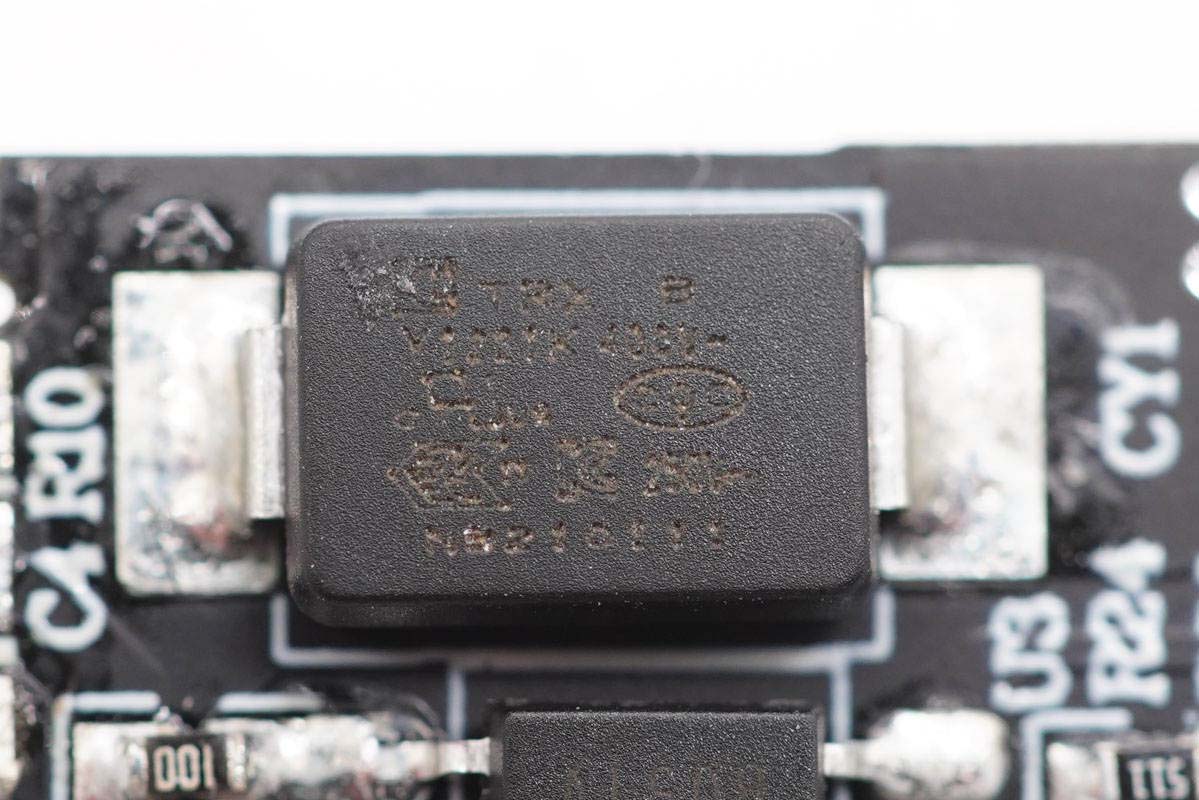 其中一顆高壓濾波電解電容采用永銘KCX系列,這是永銘2019年推出的快充電源專用產品,其工作溫度范圍在-55℃~105℃,3000小時壽命,并具備抗雷擊、低漏電流(低待機功耗)、高紋波電流、高頻低阻抗等性能優勢。