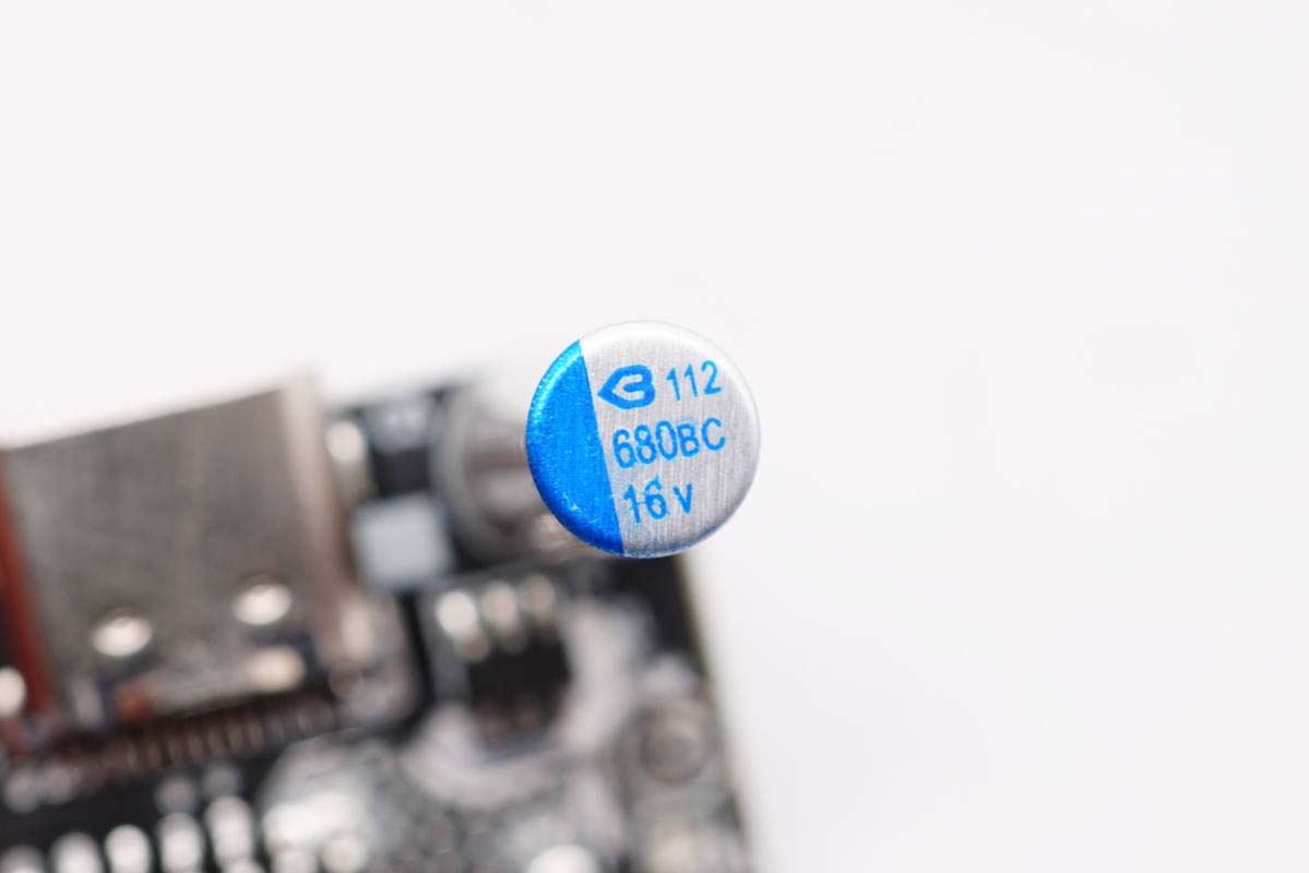 輸出濾波固態電容來自綠寶石,規格為16V 680μF。