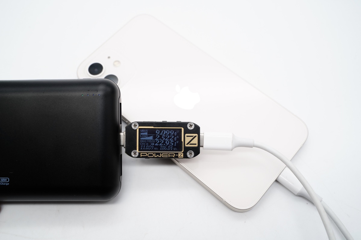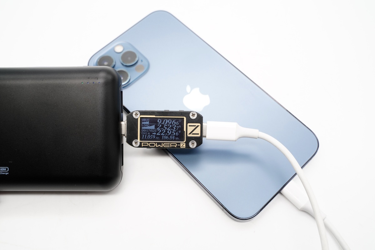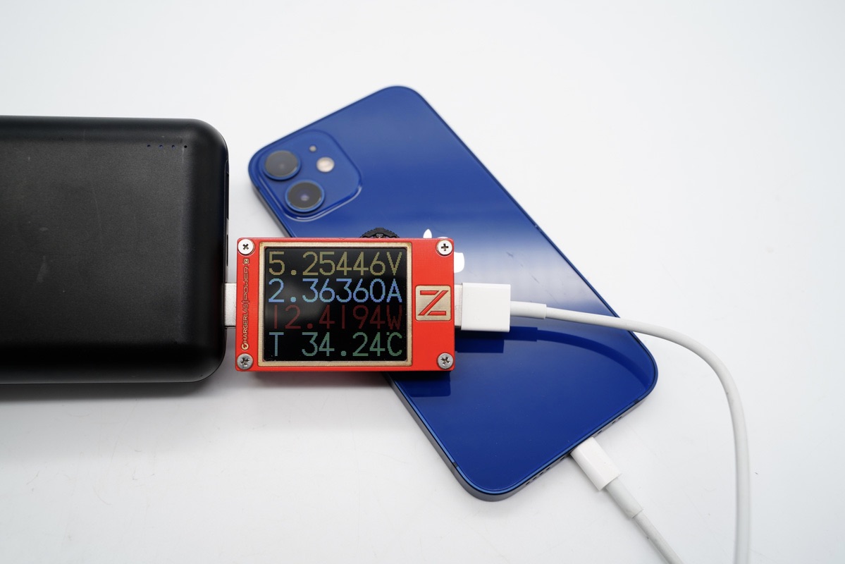 USB-C 支持 PD 快充輸出,為 iPhone 12 充電時可以提供 9V 快充,功率在 23W 左右。