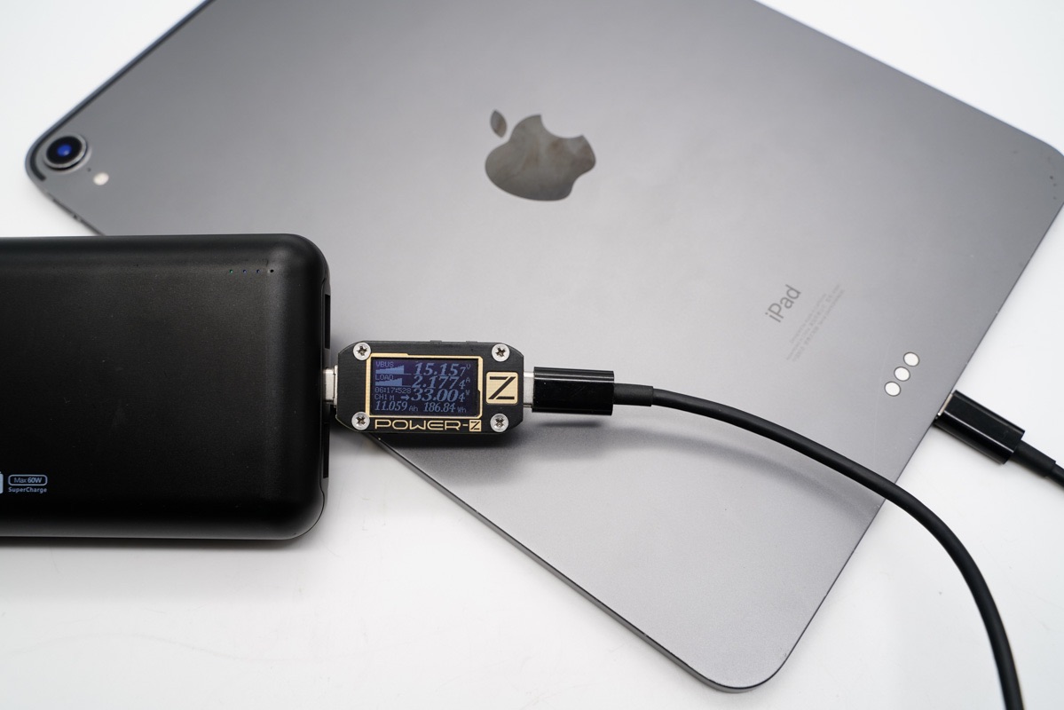 iPad Pro 同樣也支持 USB PD 快充協議,使用 USB-C 為 iPad Pro 充電,實測功率為 15.15V 2.17A 33W。