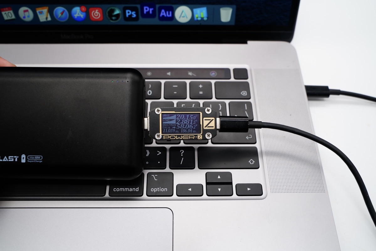 為 MacBook Pro 16 可以提供 58W+ 的快充功率,此時已經達到了充電寶的最大輸出功率。
