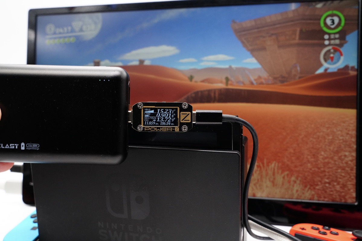 如果想成功激活 Switch 的底座 TV 模式,充電設備就必須要支持 15V3A 或更高的輸出檔位,實測使用 USB-C 供電,可以成功開啟 Switch 的底座 TV 模式。