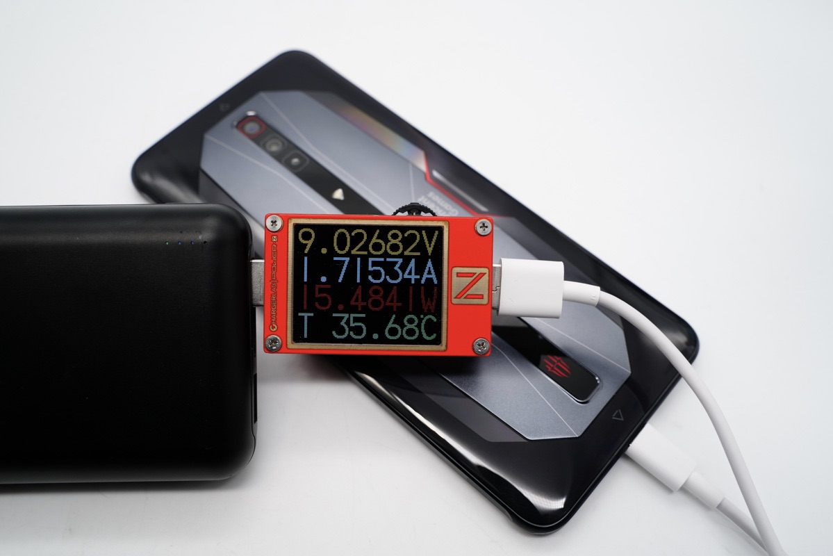 使用 USB-A2 為紅魔 6 Pro 充電,功率為 9.02V 1.71A 15.48W,同樣可以觸發 QC 快充。