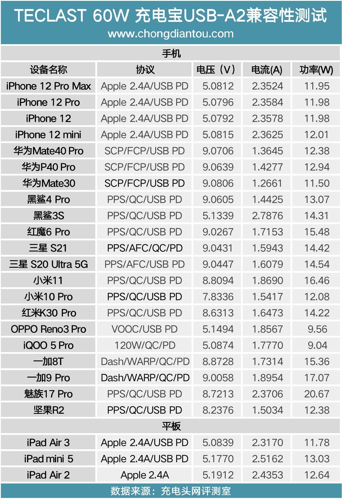 以上是使用 ChargerLAB 的 POWER-Z KT002 測試充電寶接口的快充協議以及 PD 輸出檔位,下面還會通過兼容性測試環節進一步驗證快充支持,避免出現誤差。