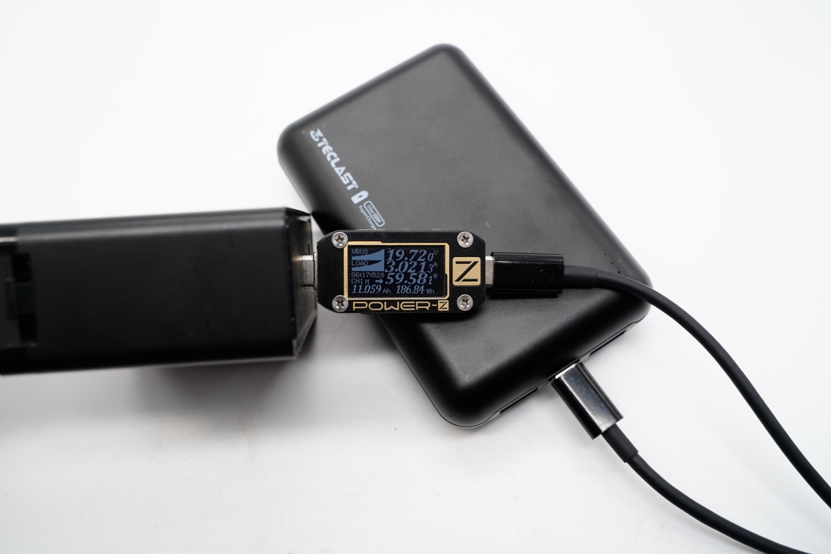 TECLAST 最新推出的這款充電寶除了支持 60W 快充輸出外還支持 60W 快充輸入,搭配 60W 或更大功率的充電器可以獲得更好的自充速度體驗,實測使用百瓦充電器為充電寶充電功率在 59W+ ,不僅要快充輸出,自身回血也要快。