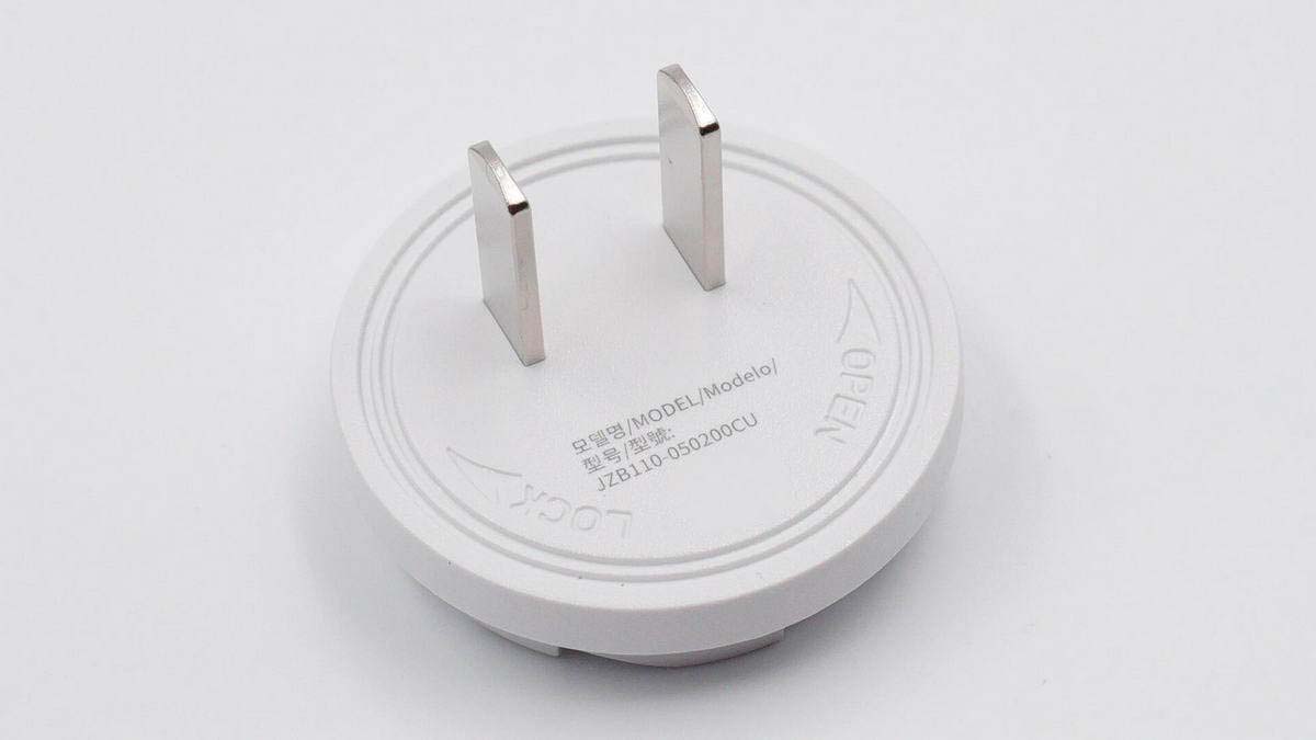 充電器插腳為國標,采用插腳和充電頭獨立模塊設計,插腳塑料殼上印有型號:JZB110-050200CU。