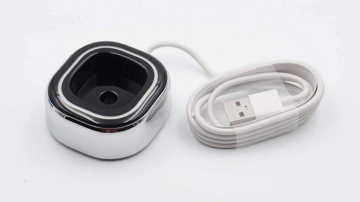 無線充底座自帶USB-A輸入線纜,機身整體亮面處理,光滑圓潤,側身套有鋁制金屬殼。