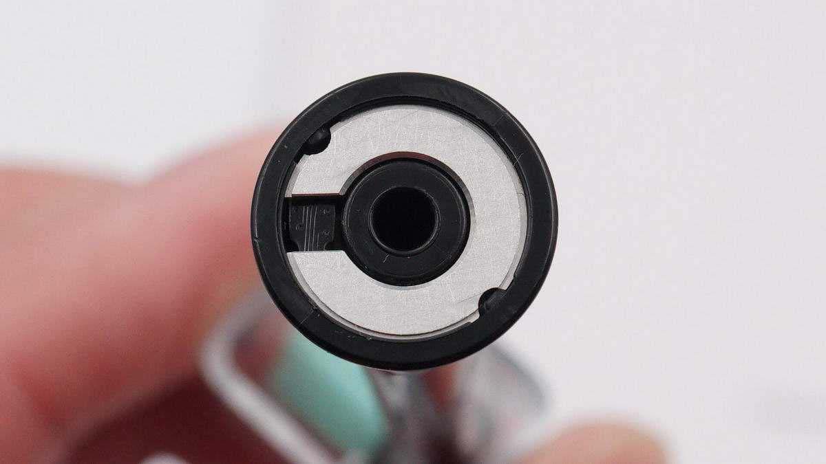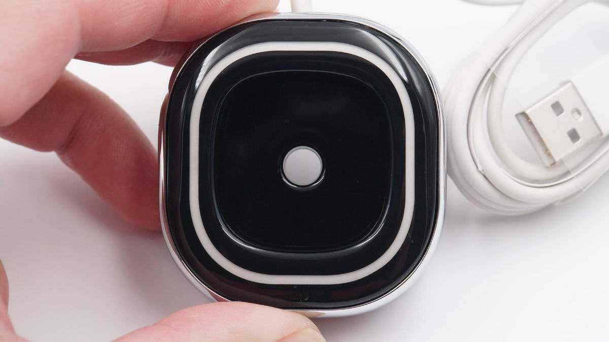 機身頂部白色環帶是指示燈,插槽中心鏤空有一個圓孔,作用是排水。