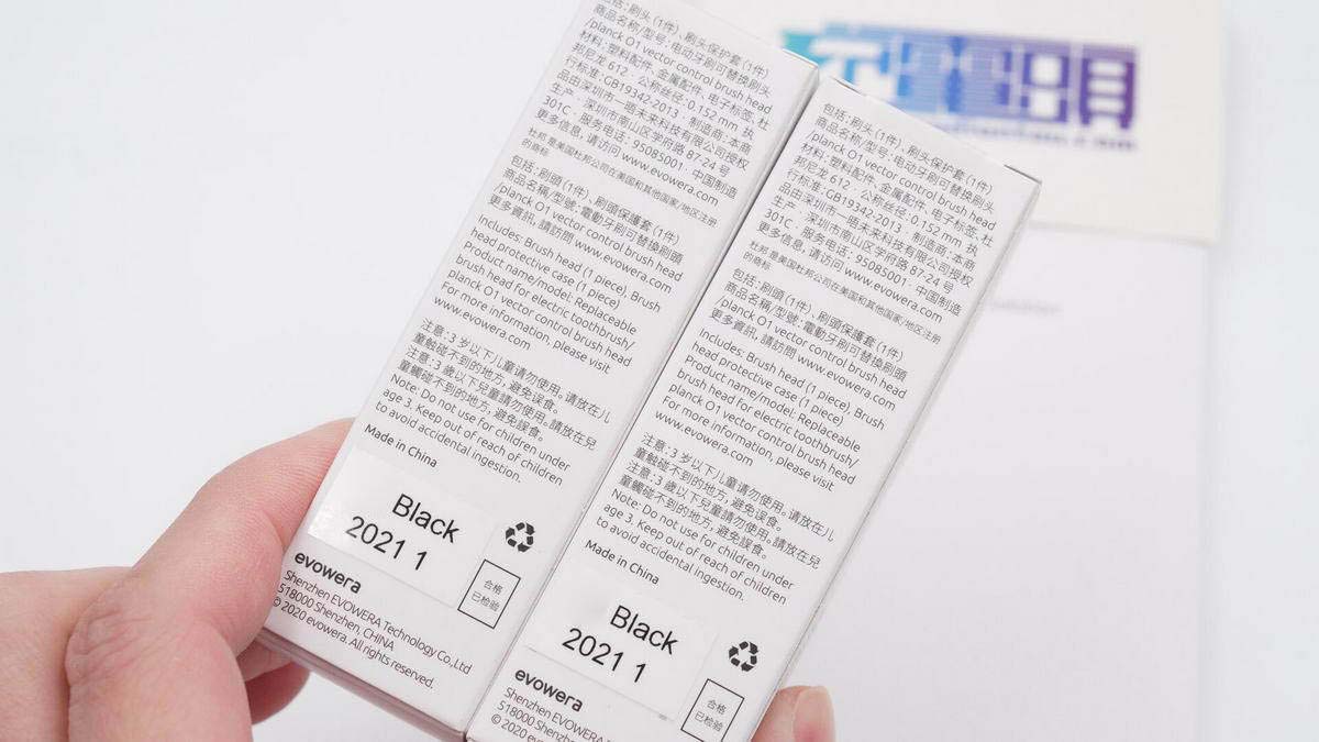 牙刷頭兩只裝,小盒子正面印有對應的外觀圖。