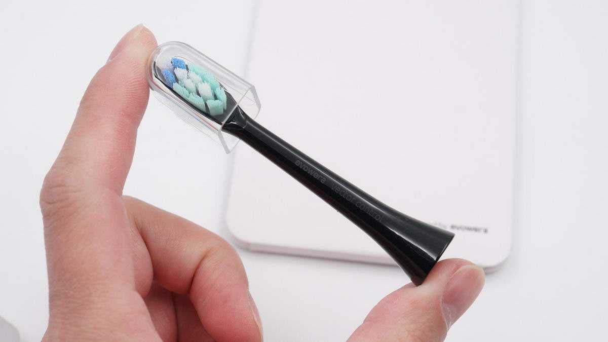 刷頭套有透明塑料殼,防止刷毛受擠壓變形。