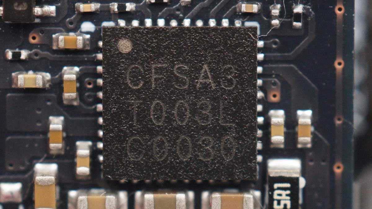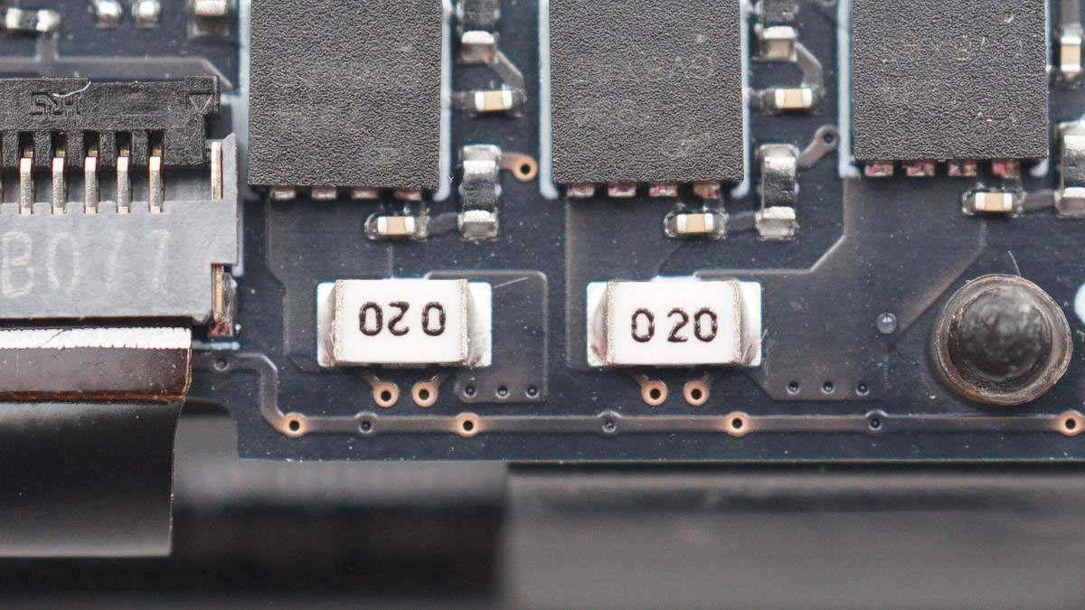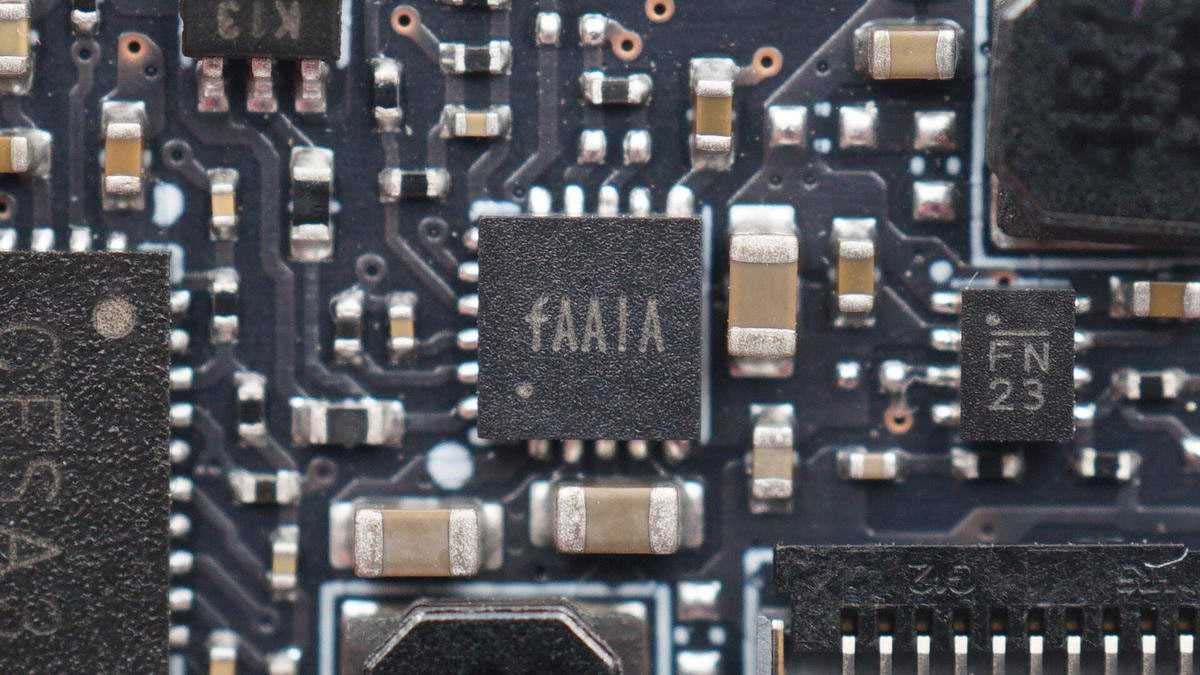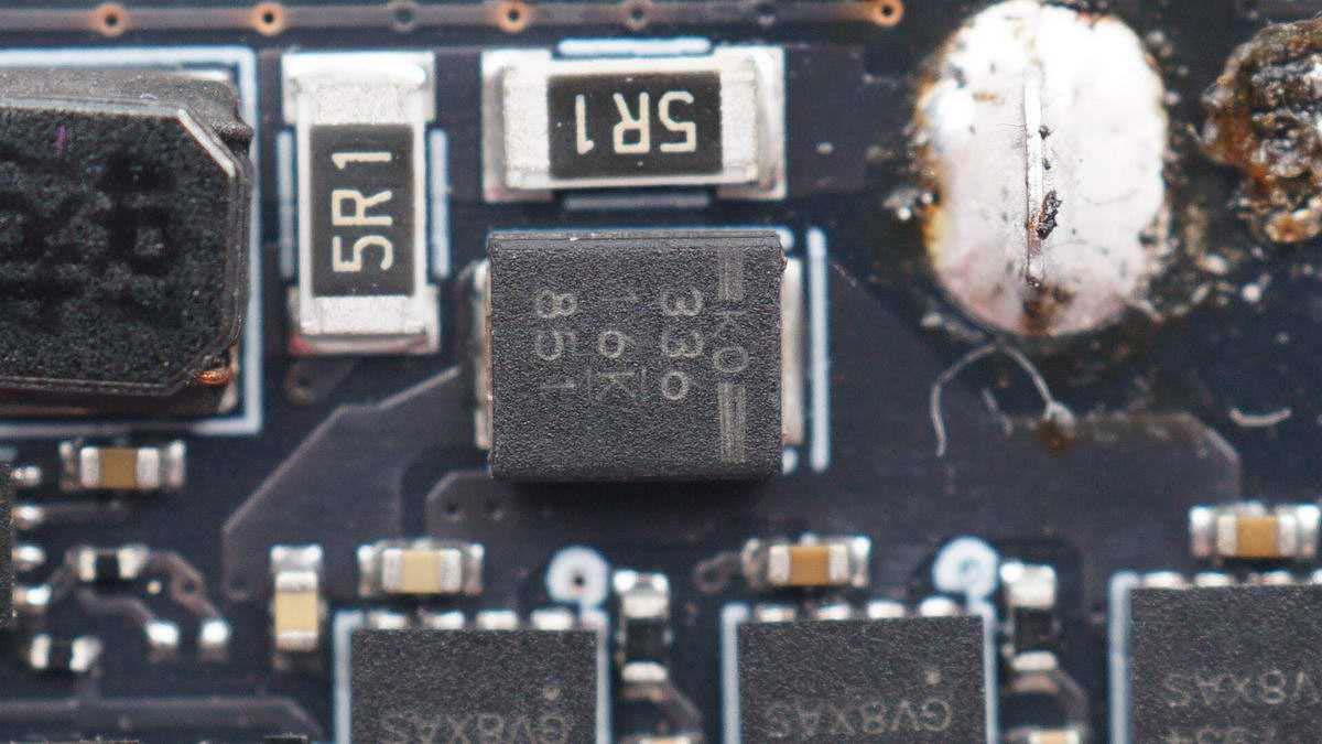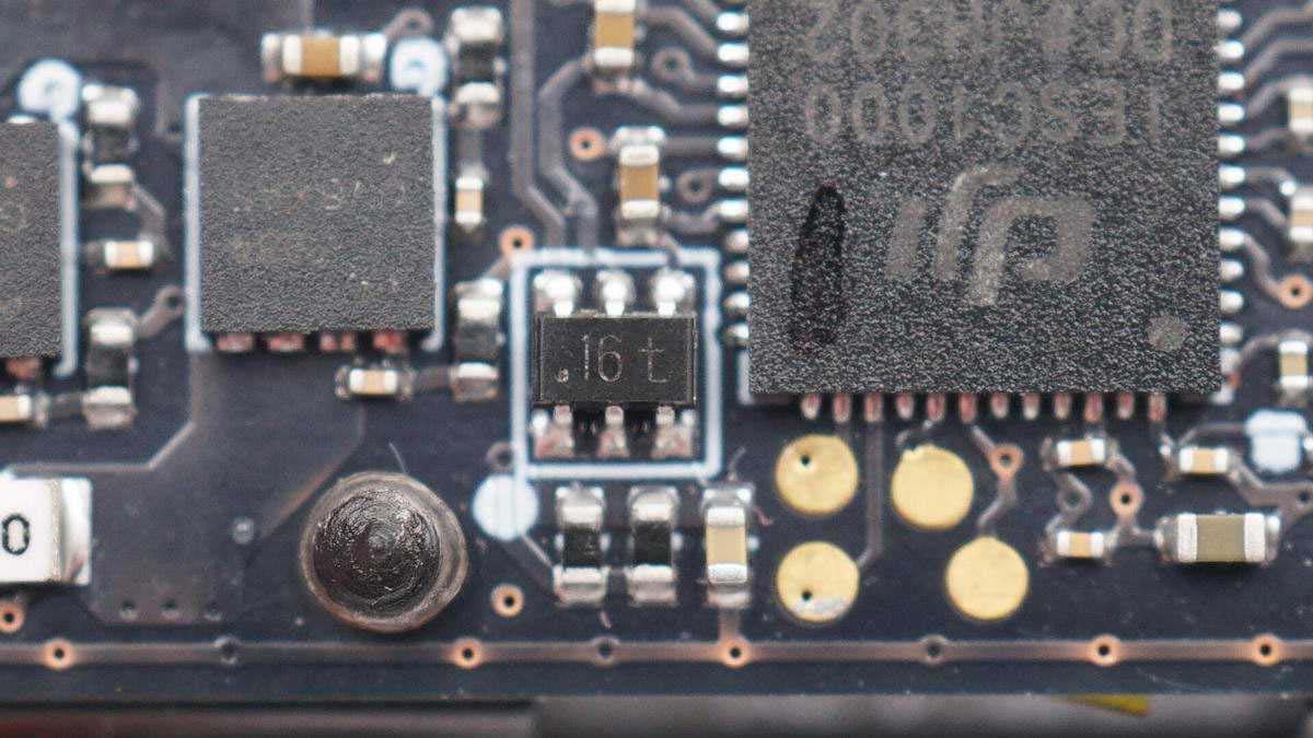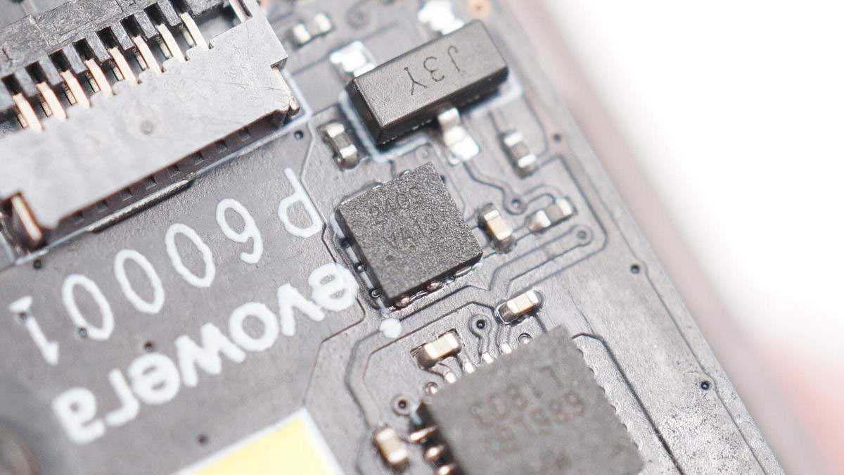 將防水膠清理掉,可以看到有存儲芯片、無線充主控芯片、兩顆MOS管以及諧振電容,電容打膠固定。板子另一面有無線充電線圈,不過為了極致防水,內部使用硬封膠填充成一個整體,板子沒法拆下來。