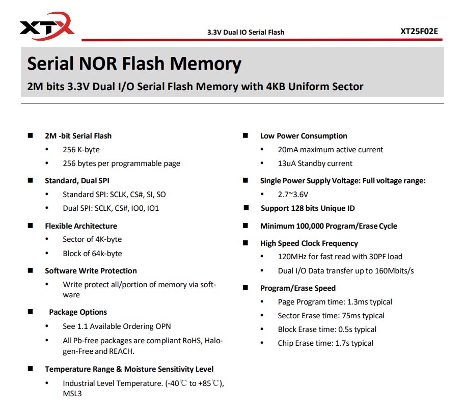 XTX芯天下XT25F02D,256KB SPI NOR Flash存儲器,用于存儲充電配置。
