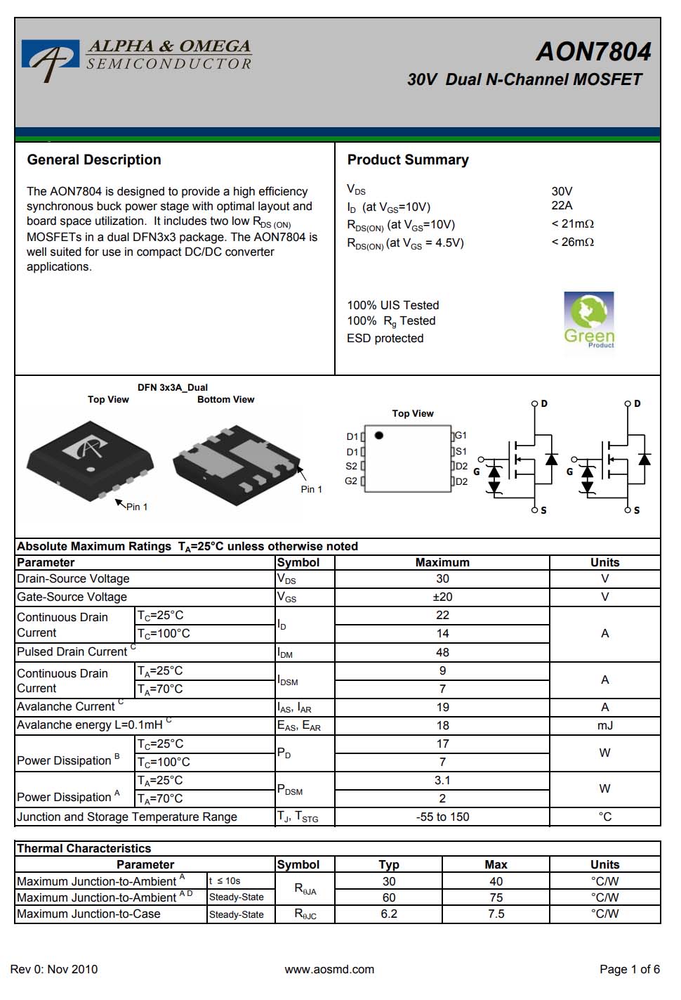 兩顆AOSMD的 AON7804雙NMOS組成H橋,耐壓30V,用于無線充電線圈的功率傳輸。