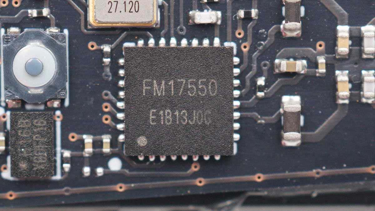 復旦微 FM17550 NFC通訊芯片,與刷頭的NFC標簽通信,傳輸給QN9080主控處理。
