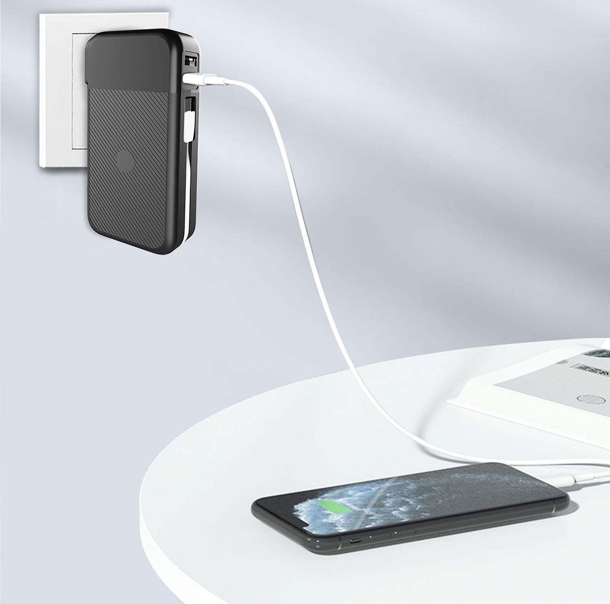 無(wú)線磁吸,吸一下就來(lái)電。新一代無(wú)線磁吸多功能智能快充。即是插頭又是充電寶。插上插座,手機(jī)一小時(shí)之內(nèi)充滿(mǎn)電。手機(jī)充滿(mǎn)電后,充電寶三小時(shí)內(nèi)自動(dòng)充滿(mǎn)。