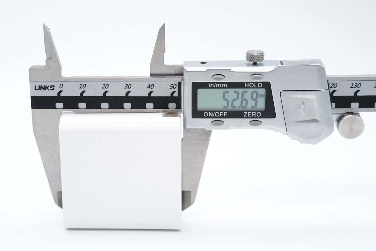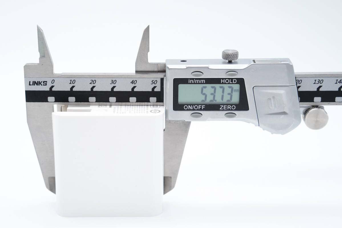 使用游標卡尺實測充電器機身長度為52.69mm。