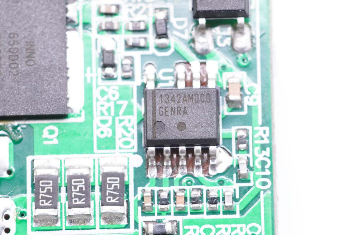 開關電源主控芯片采用ON安森美NCP1342,這是一顆高頻準諧振反激初級PWM控制器,內置主動X2電容放電和多重完善的保護功能,具有超低的待機功耗。