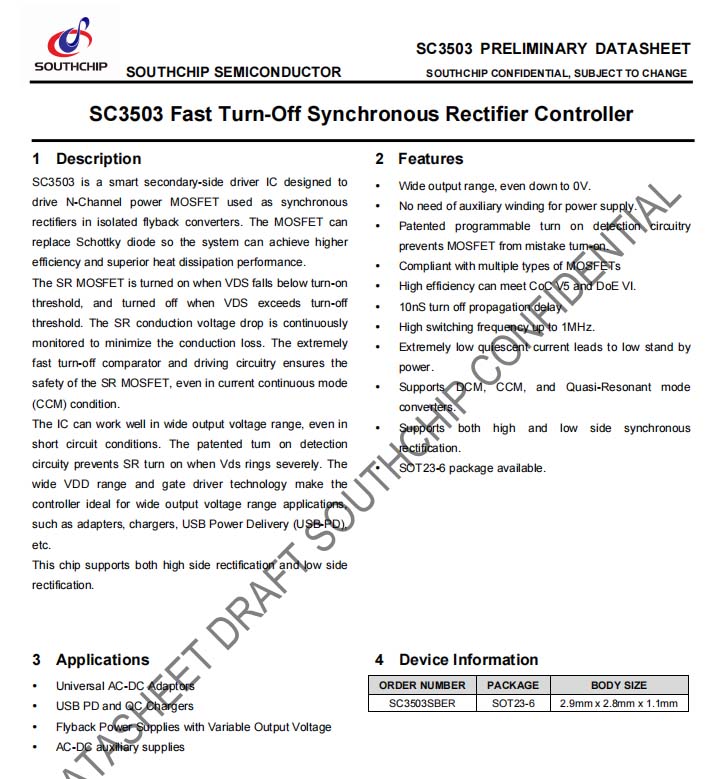 南芯SC3503資料信息。