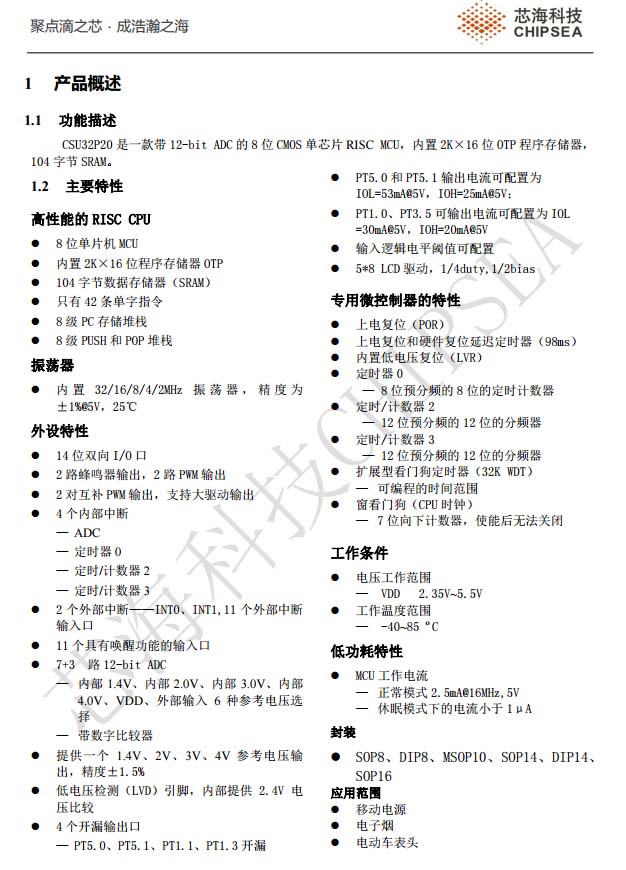 芯海科技CSU32P20資料信息。