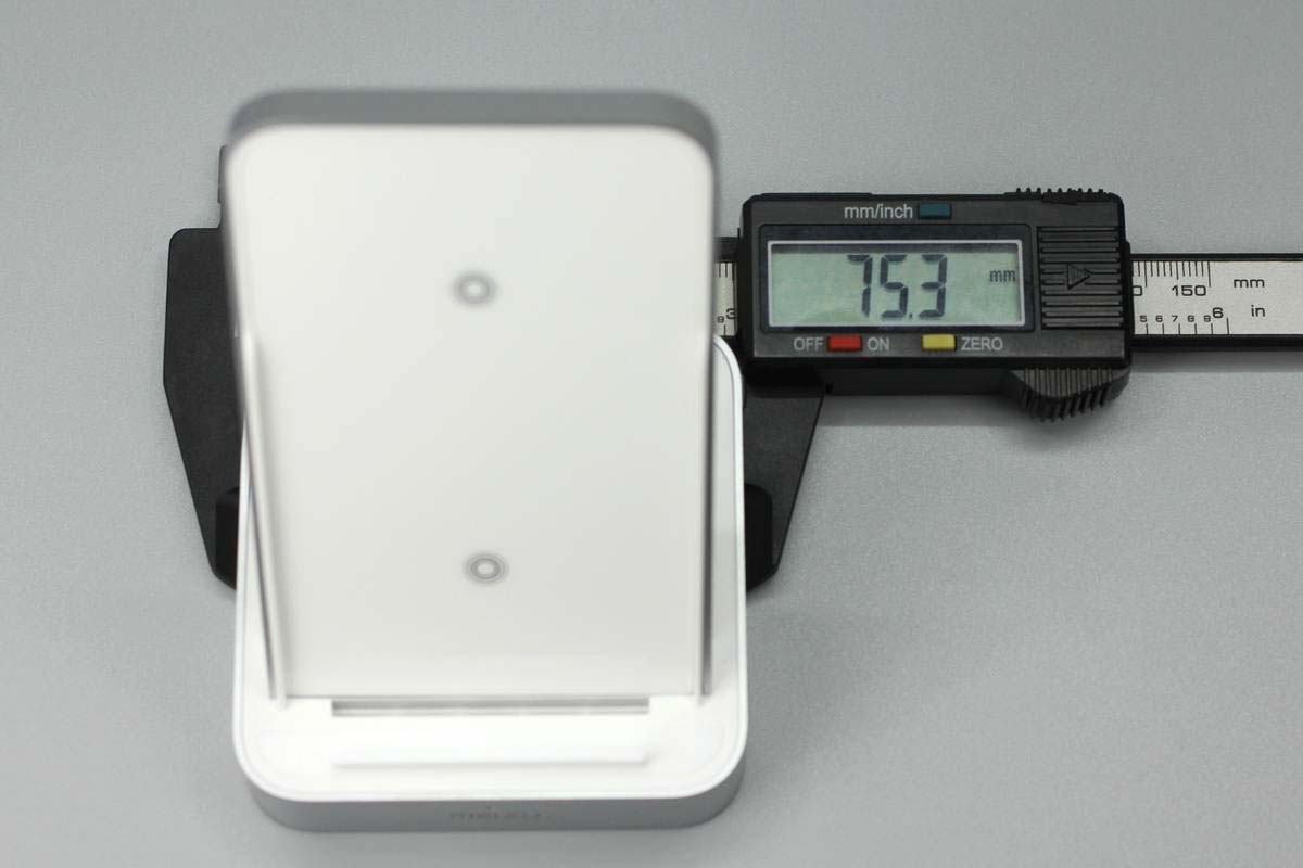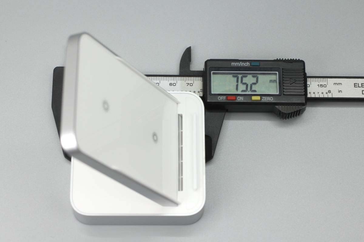 使用游標(biāo)卡尺測(cè)得無線充底座長(zhǎng)度為75.2mm。