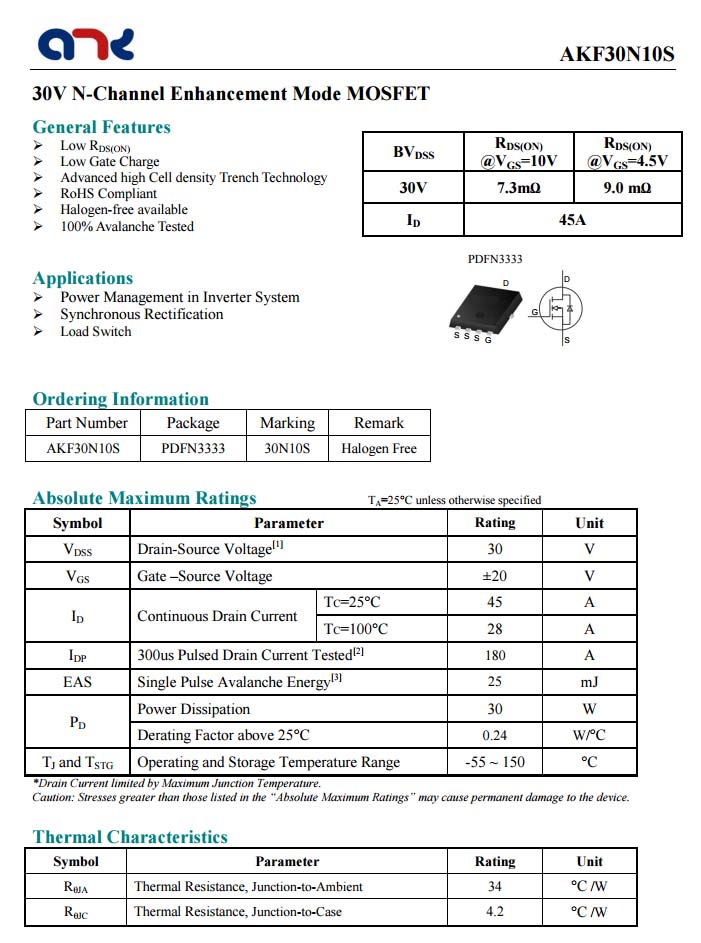 方舟AKF30N10S資料信息。