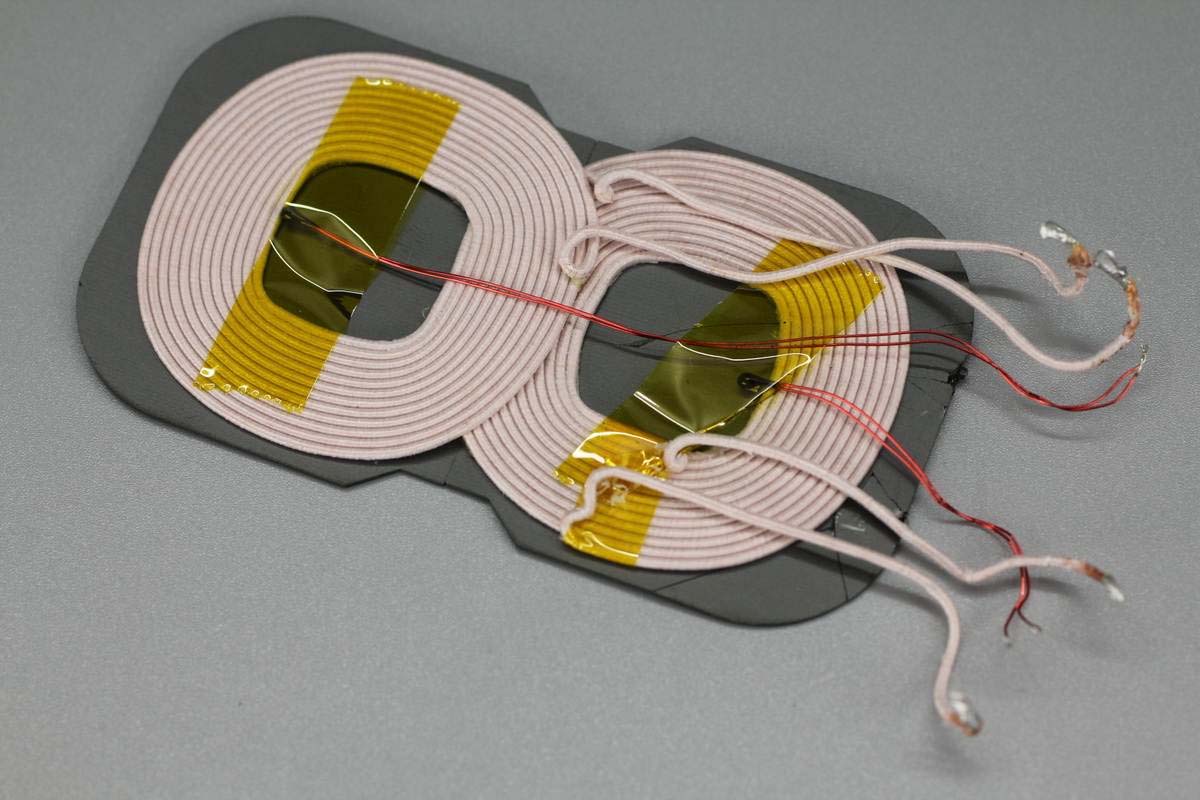無線充電線圈焊接處墊有一塊青稞絕緣紙。