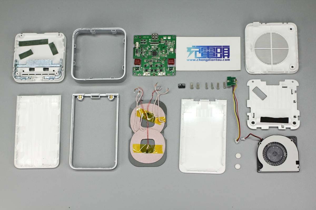 這款無線充電器內(nèi)置小風(fēng)扇,可在無線充電過程中進(jìn)行主動(dòng)散熱。此外立式機(jī)身設(shè)計(jì)讓其減少了桌面占地空間并可以作為手機(jī)支架使用,40W無線充電功率也讓使用體驗(yàn)更上一層樓,很快就能讓手機(jī)滿血復(fù)活。下面充電頭網(wǎng)就對(duì)這款產(chǎn)品進(jìn)行詳細(xì)拆解,看看內(nèi)部設(shè)計(jì)用料如何。
