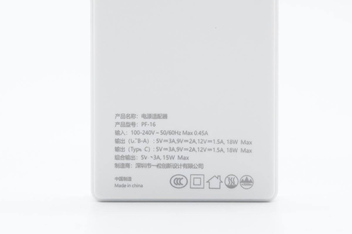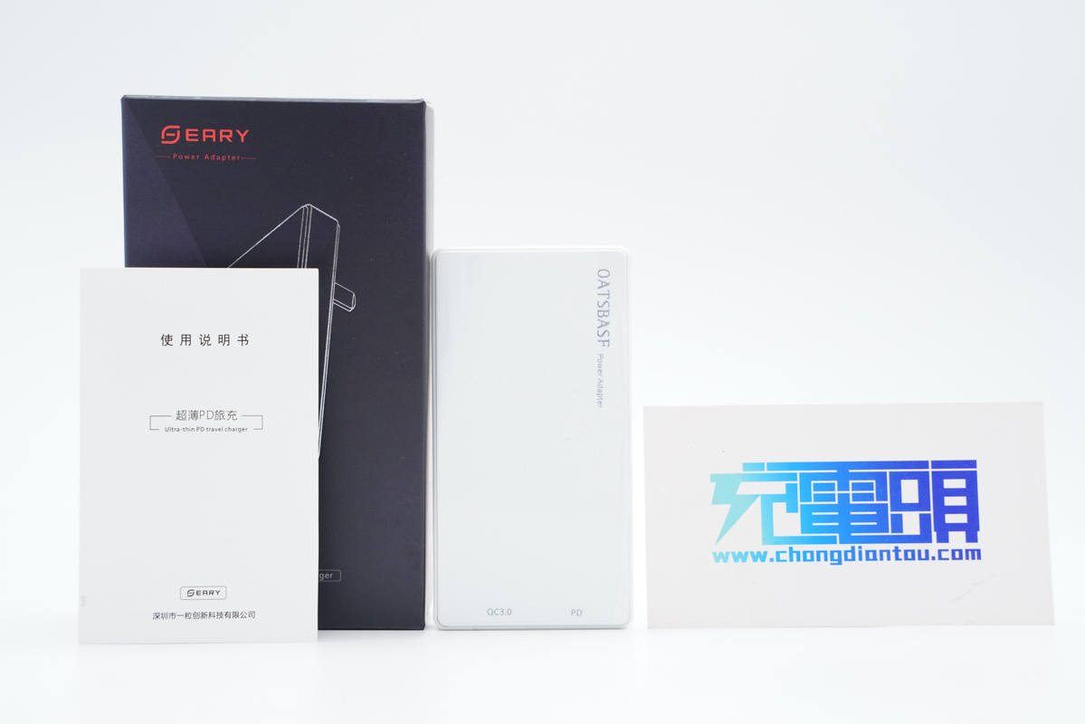 正面印有OATSBASF Power Adapter字樣,接口旁印有QC3.0和PD字樣。