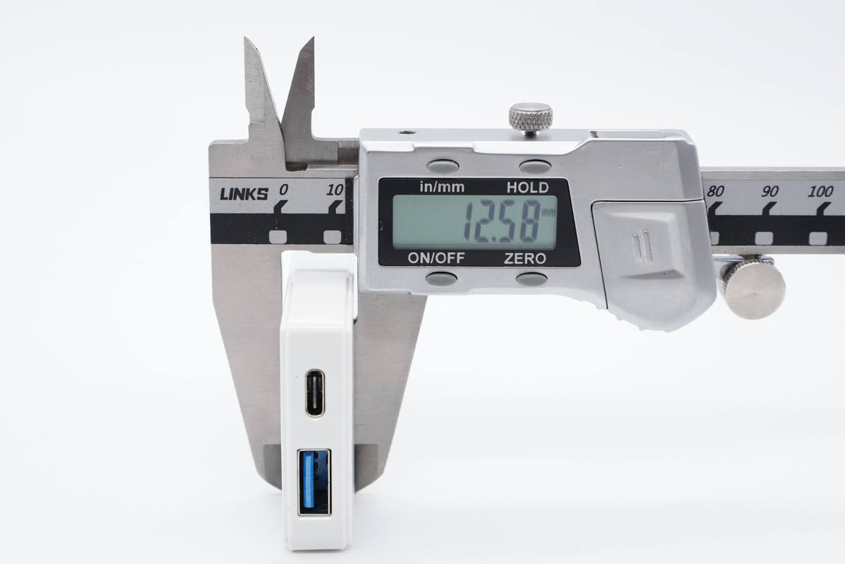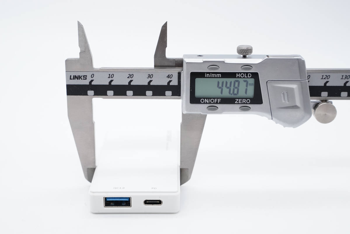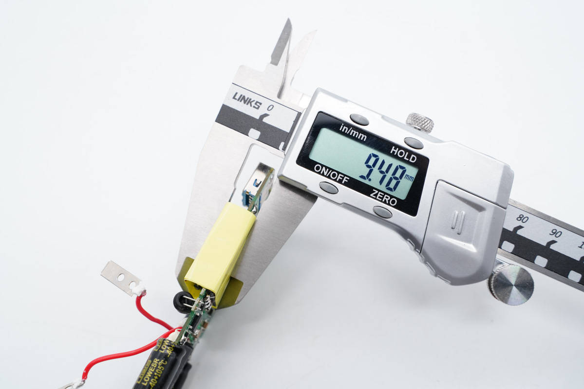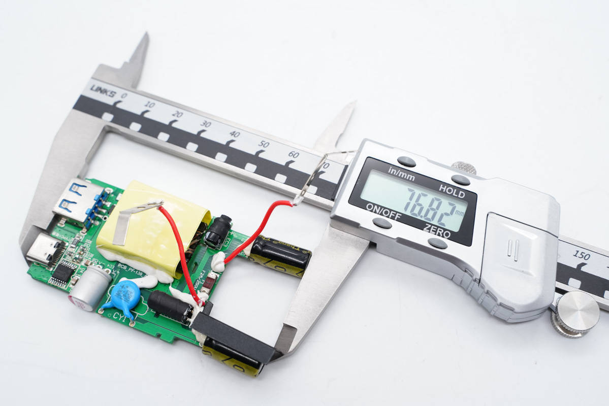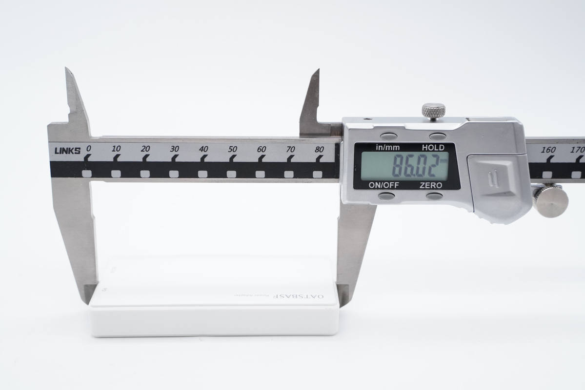 使用游標卡尺實測充電器機身長度為86.02mm。