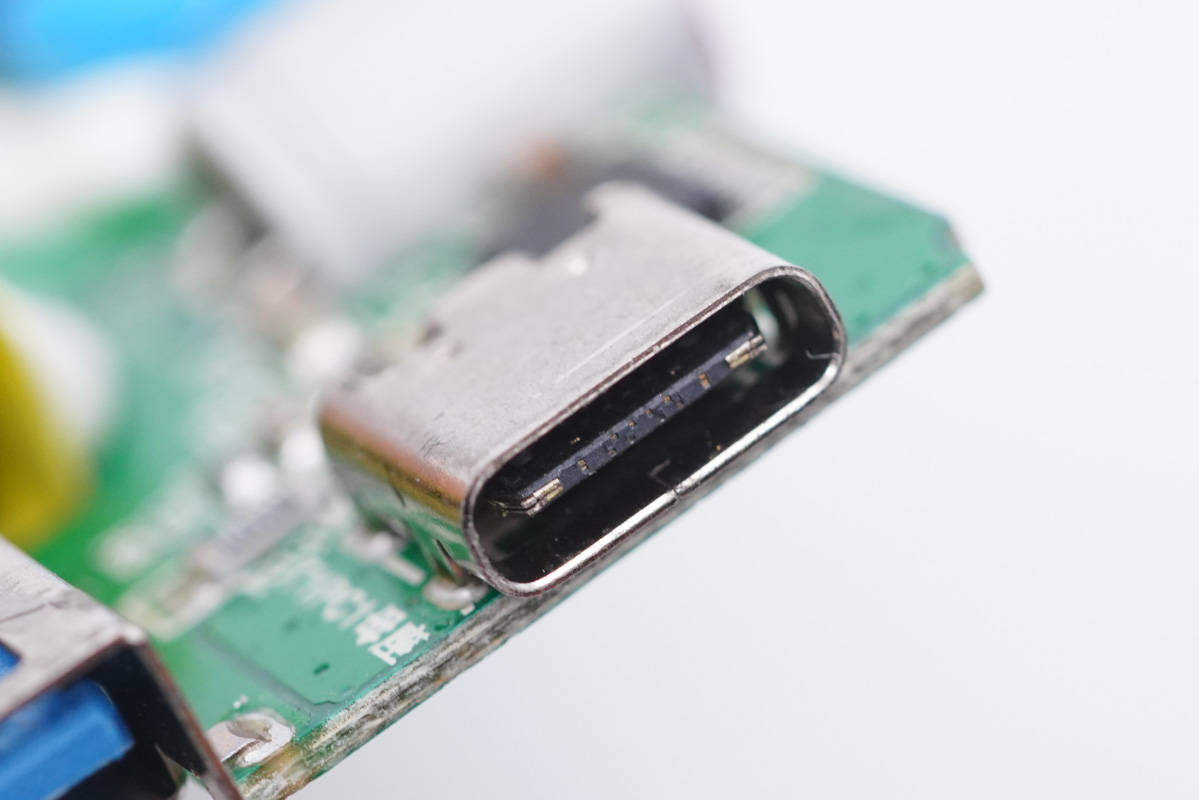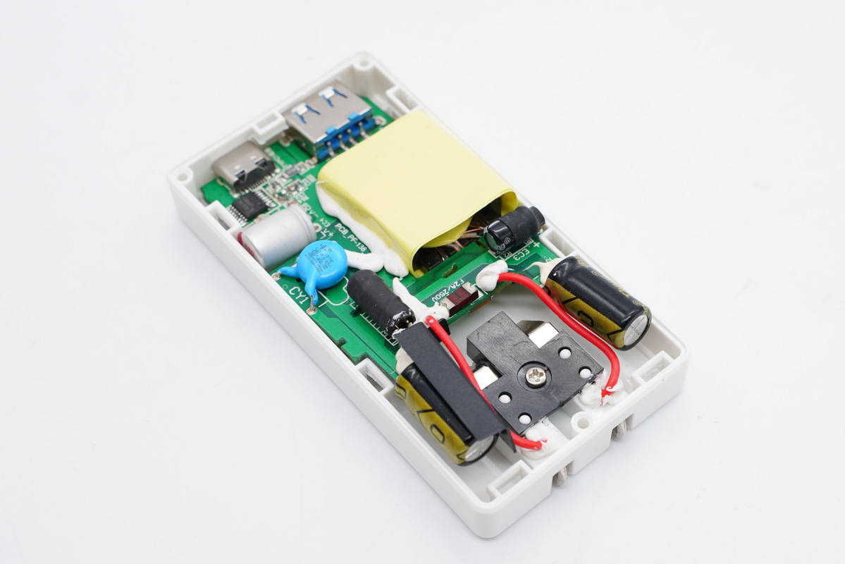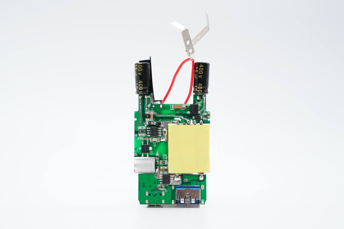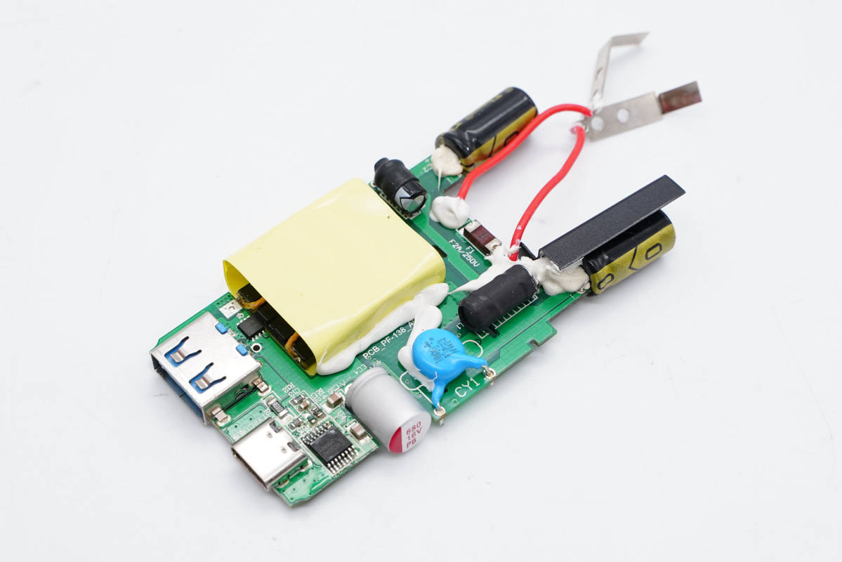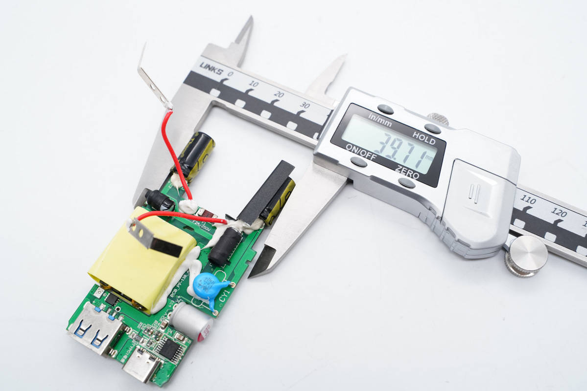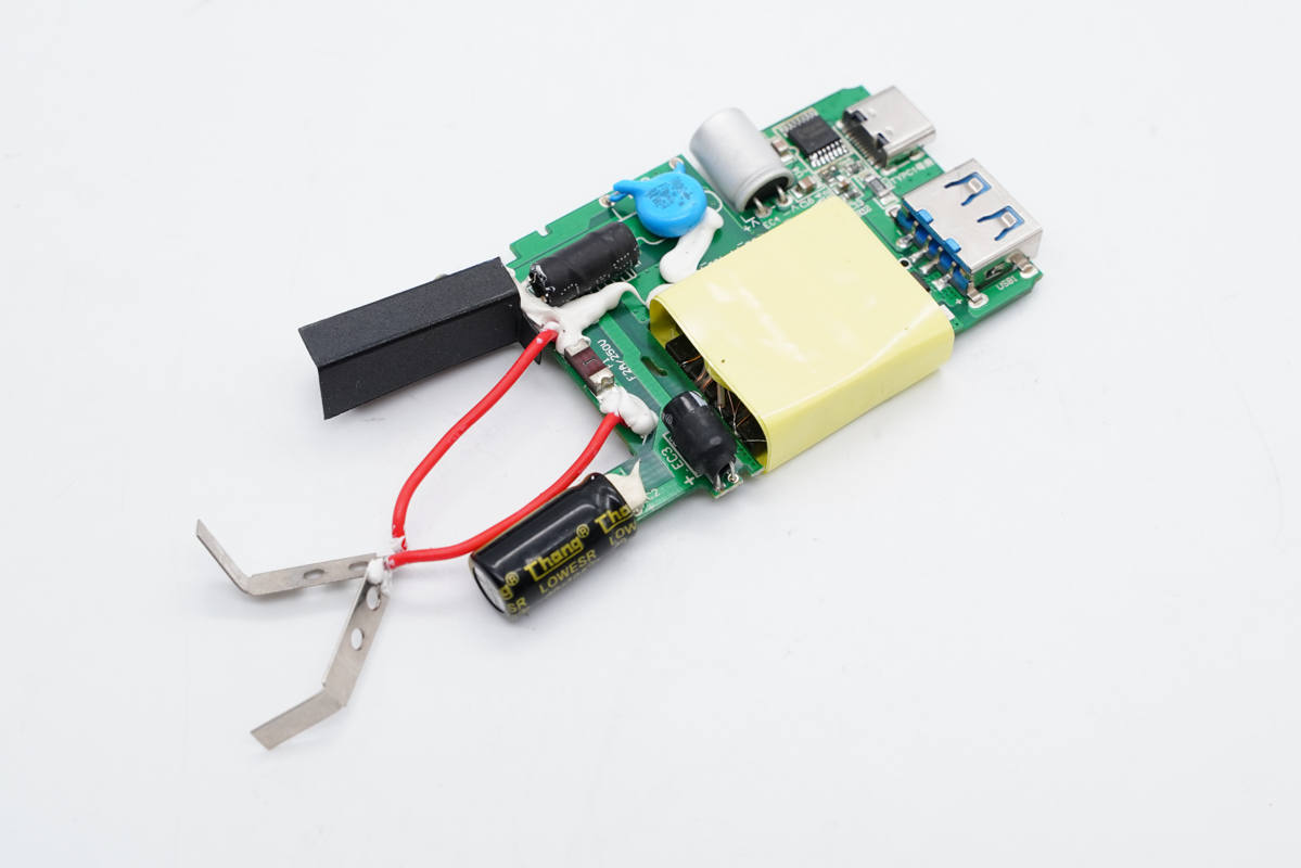 連接導線打膠加固絕緣,采用平面變壓器,同時和電容、USB母座等一樣沉板設計,以降低機身厚度。