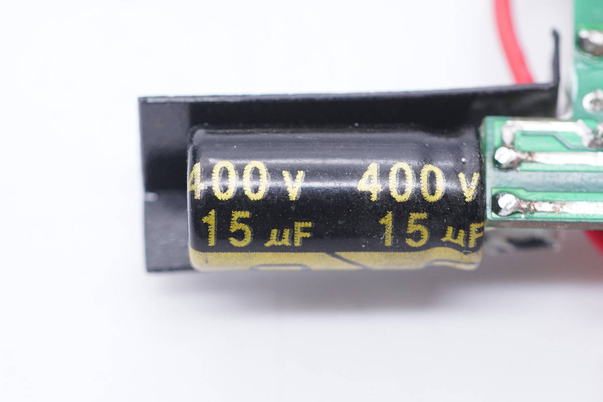 插腳使用黑色塑料板以及螺絲固定,兩側各橫置一顆高壓濾波電解電容,其中一顆還做了隔離處理。