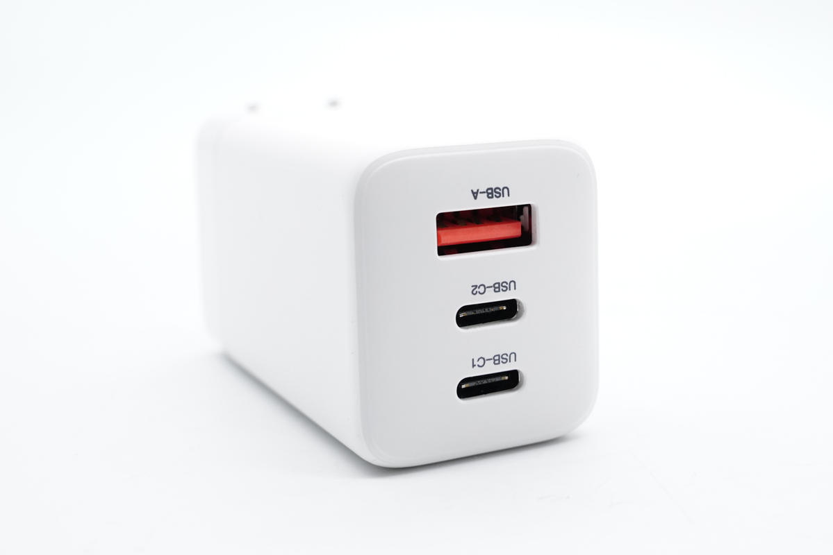輸出端配備2C1A三個接口,A口橘紅色膠芯,兩個C口為黑色膠芯,接口旁都印有區(qū)別標識。