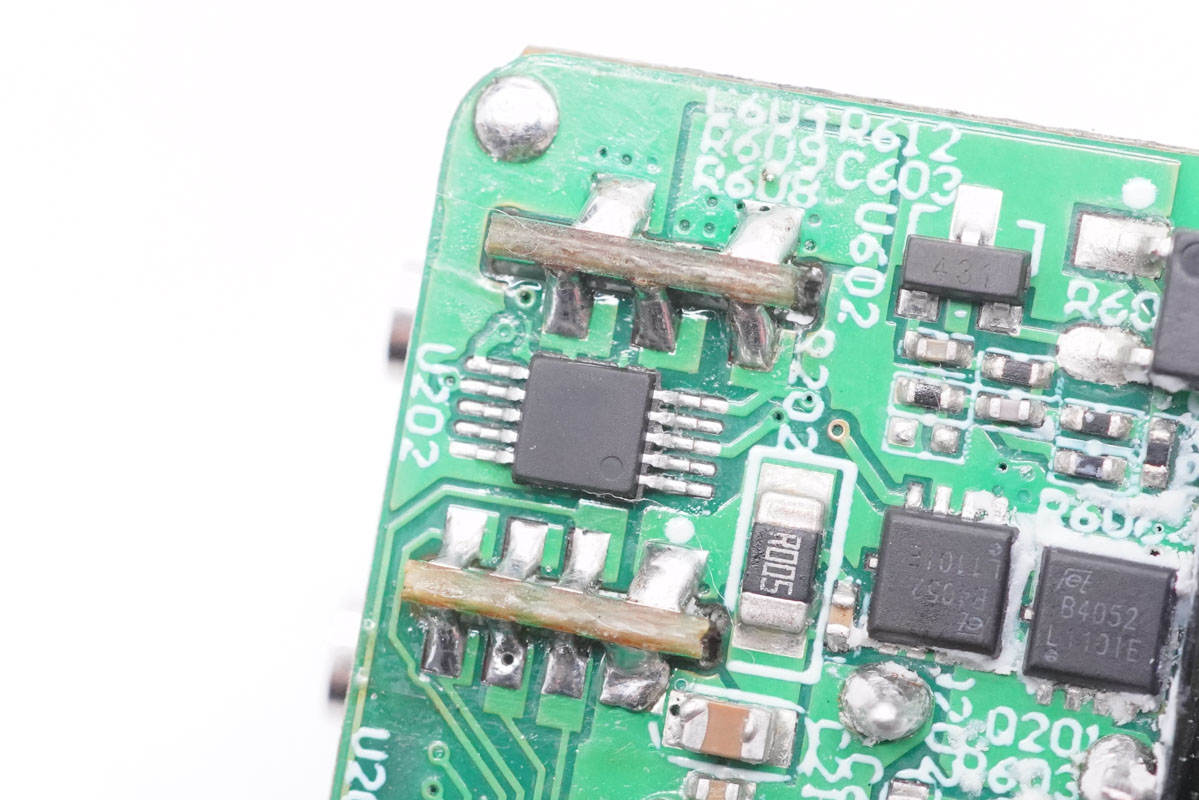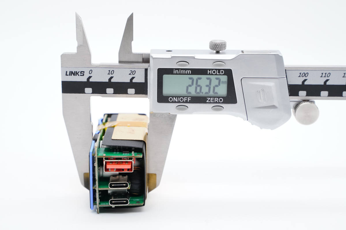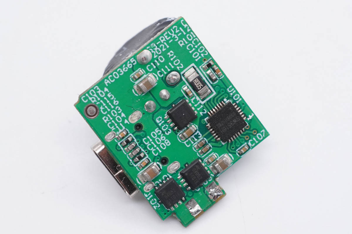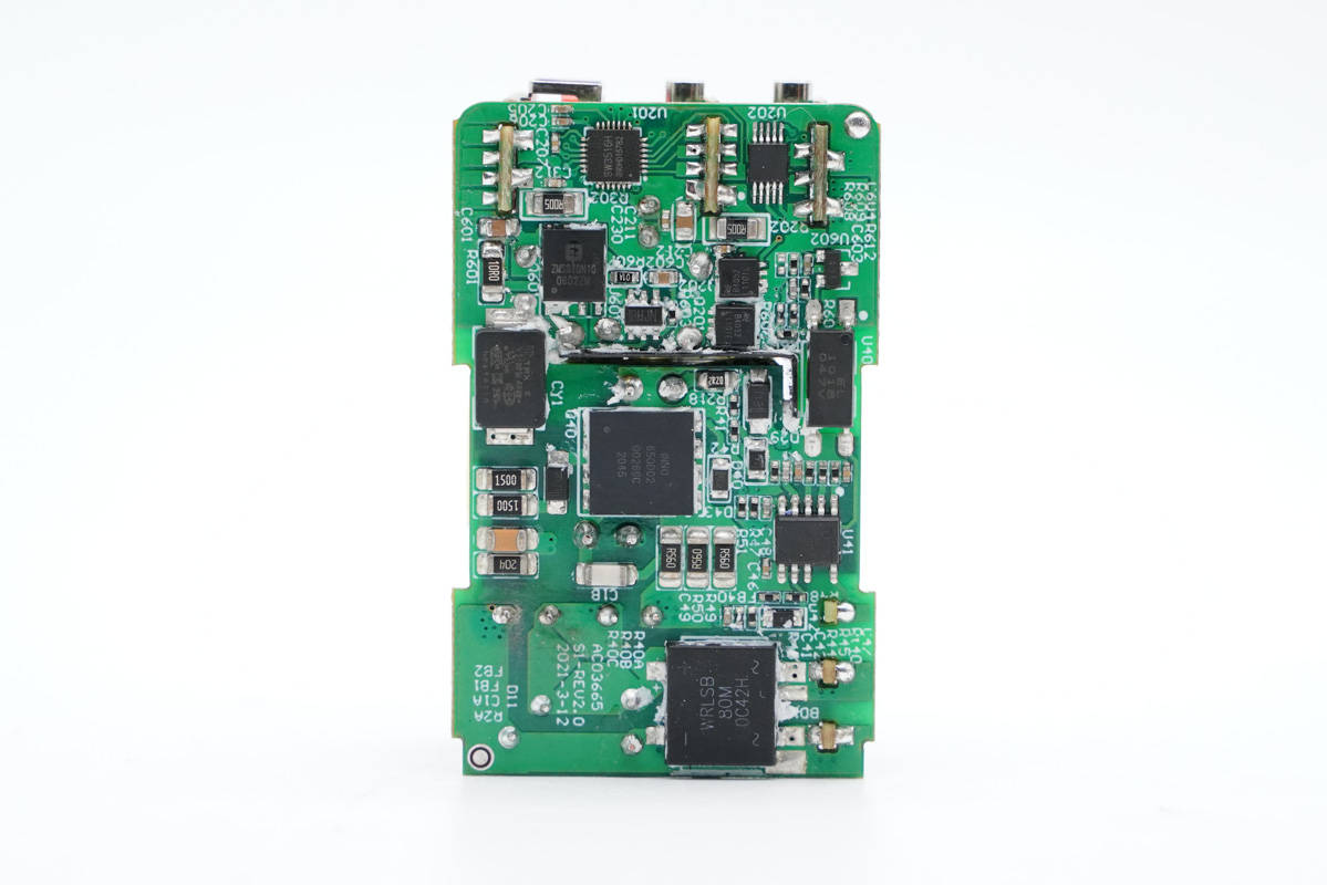 PCB板背面一覽,除開關(guān)電源電路外,還設(shè)有USB-C2口和A口的二次降壓電路。