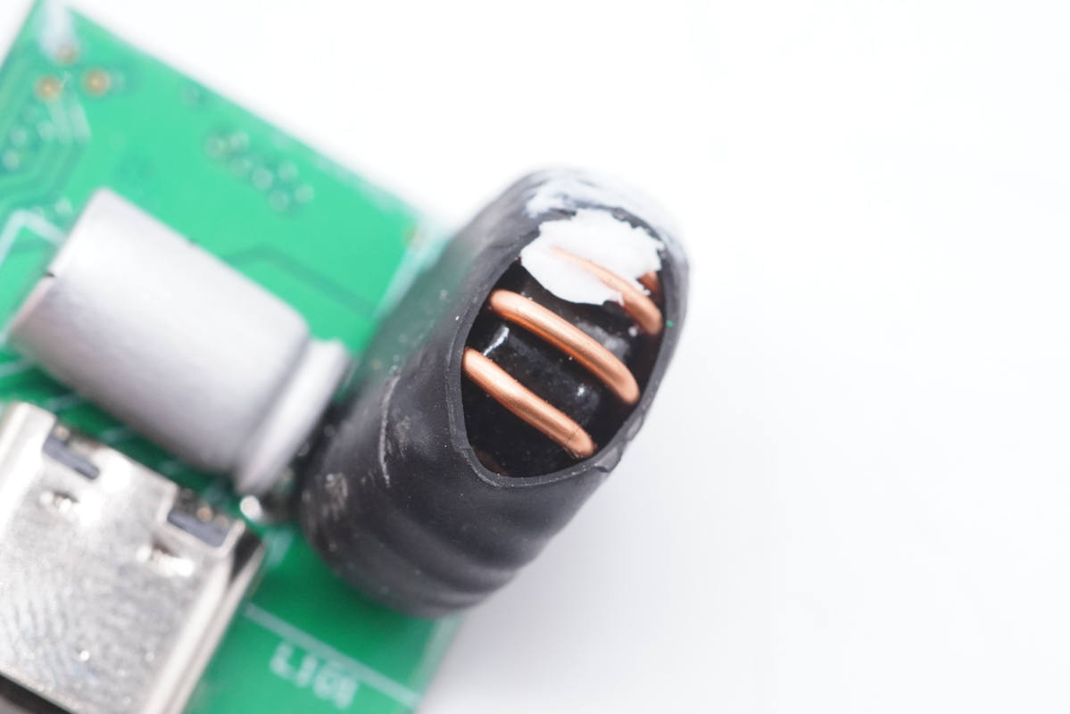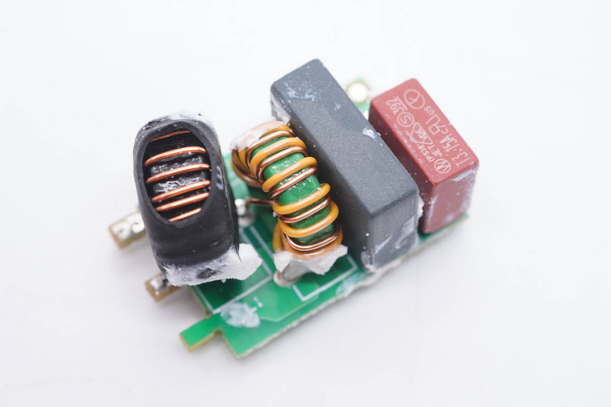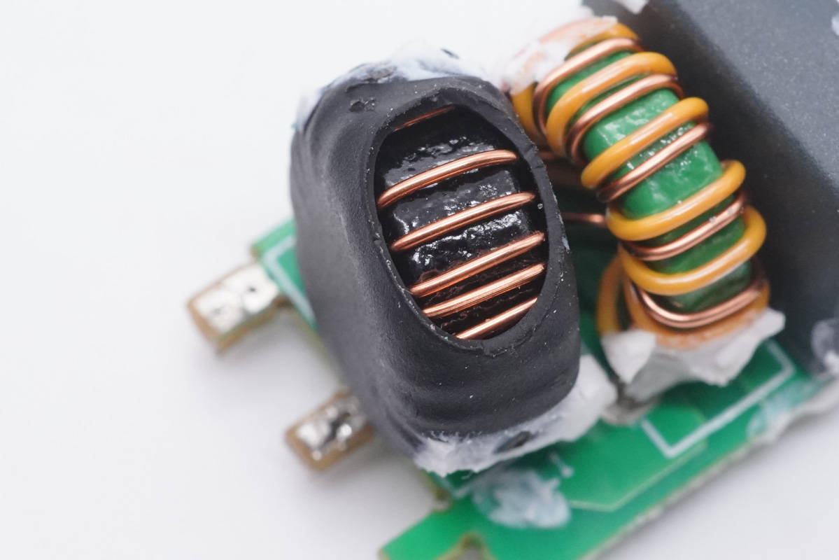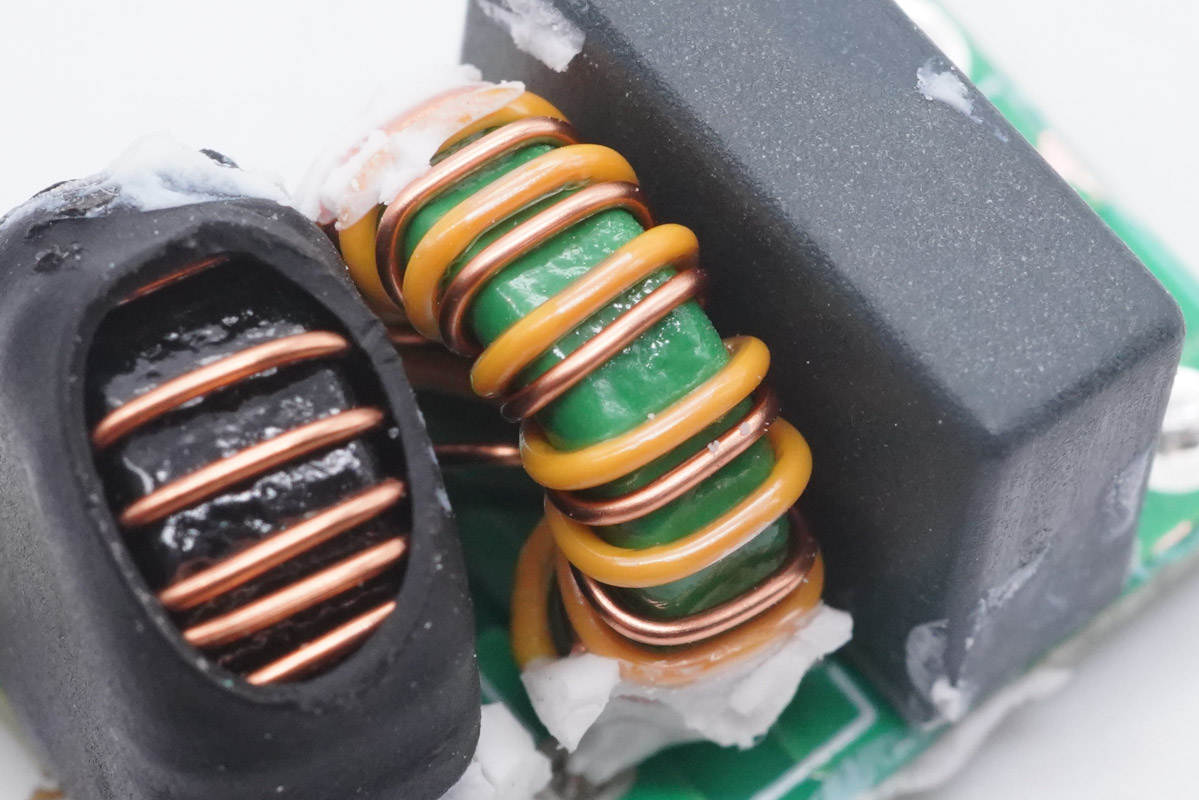 降壓電感特寫,外套熱縮管保護。