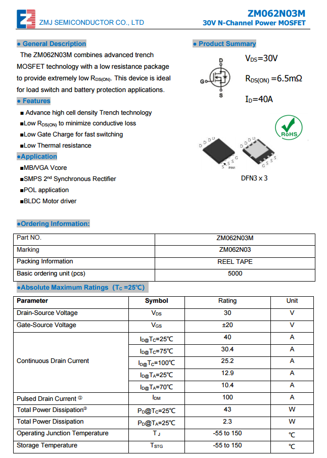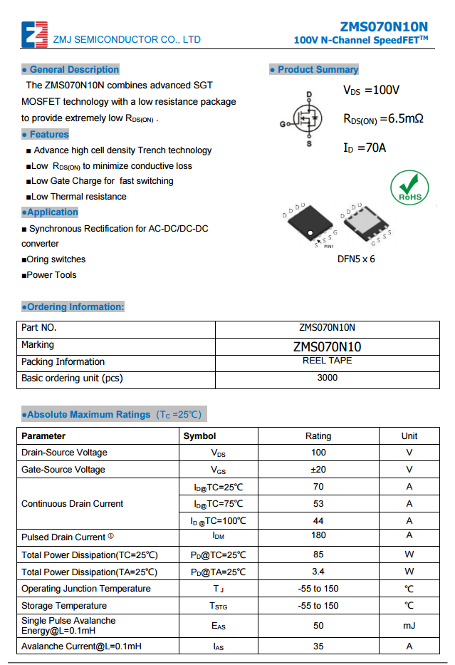 真茂佳ZMS070N10資料信息。