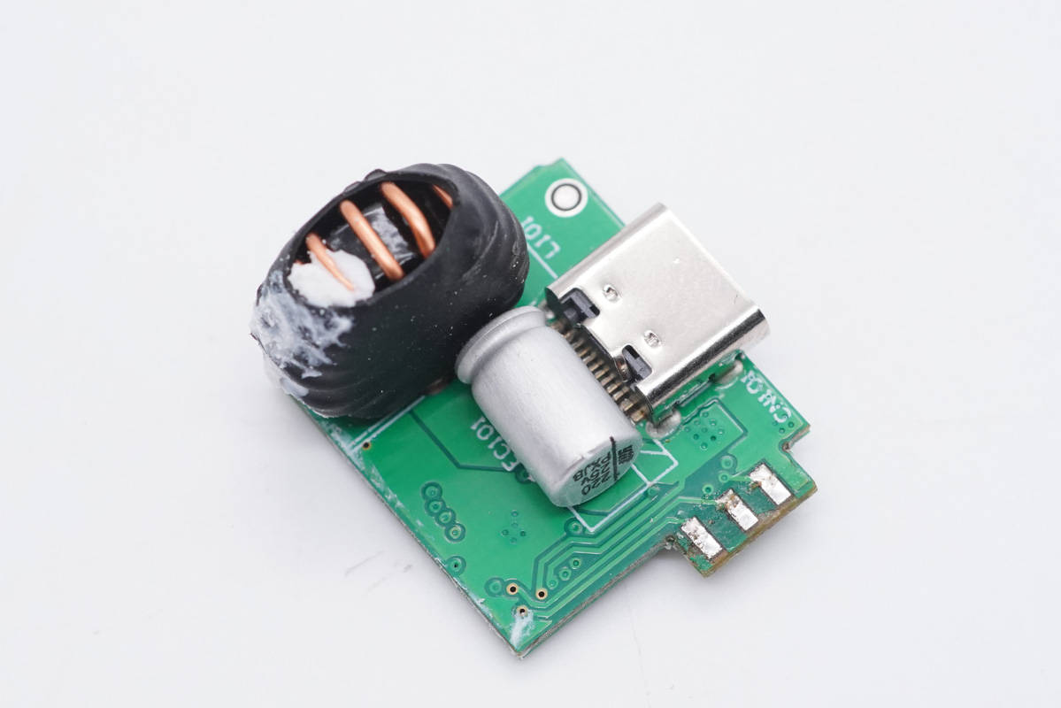 背面設(shè)有二次降壓電路以及輸出VBUS開關(guān)管。
