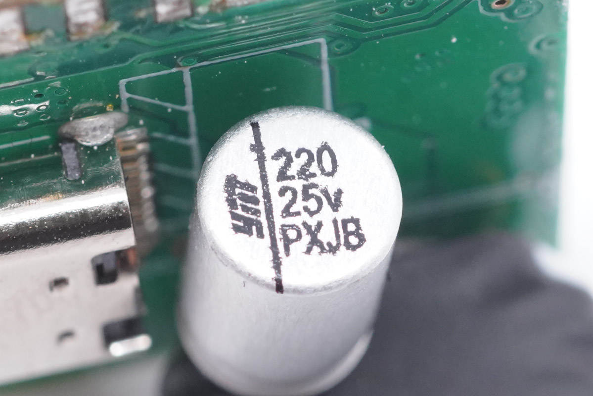 固態(tài)電容也是永銘NPX系列,規(guī)格為25V 220μF。